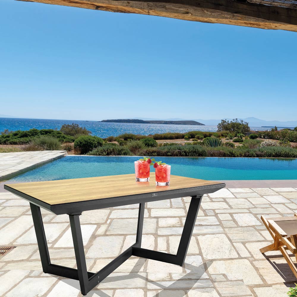 Cette table n'est pas seulement pratique avec sa capacité d'extension, mais elle est aussi esthétiquement agréable, idéale pour tout environnement moderne qui souhaite combiner fonctionnalité et style. Parfaite pour les repas en plein air, les réunions de famille ou simplement pour profiter d'un après-midi tranquille en plein air, cette table est le choix idéal pour ceux qui recherchent l'élégance et la polyvalence dans leur mobilier de jardin.