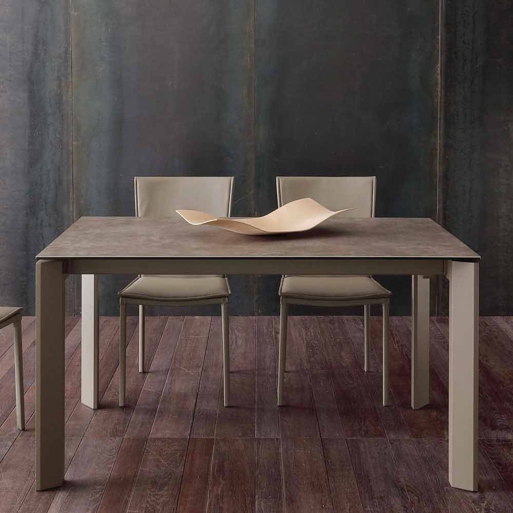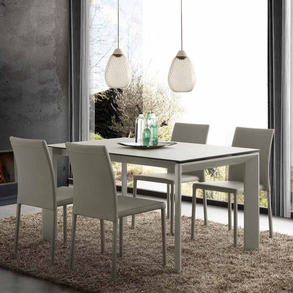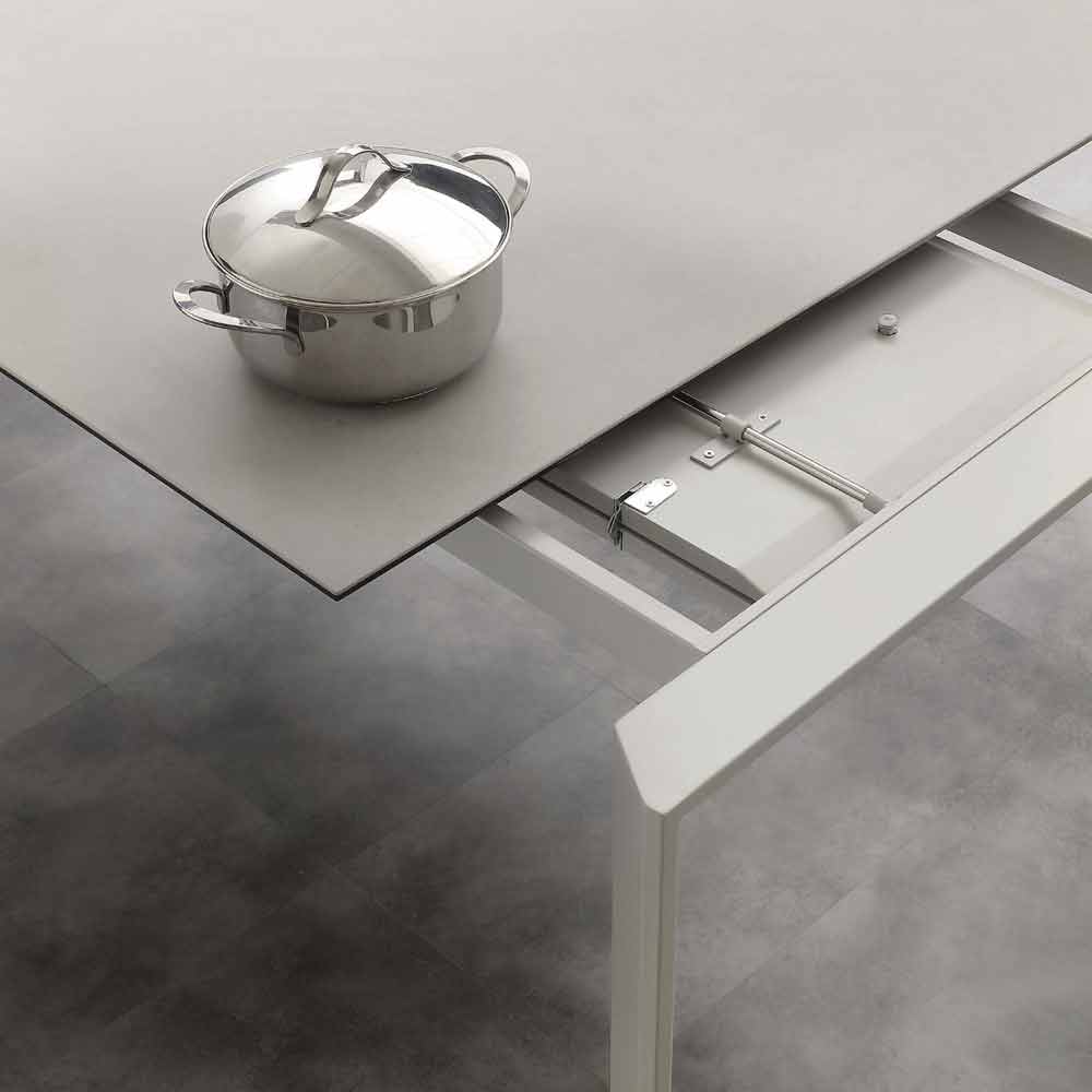 Table à rallonge de design Filadelfia, avec plateau en verre-céramique.