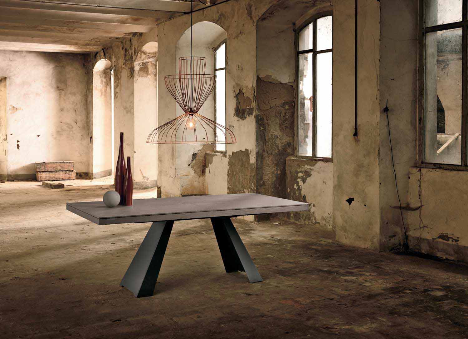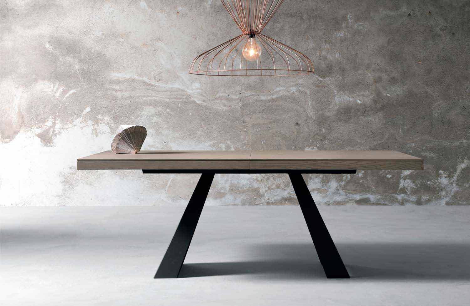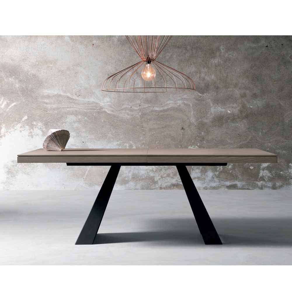 table à manger extensible avec coulisse centrale au design contemporain, conçue et produite entièrement en Italie.
