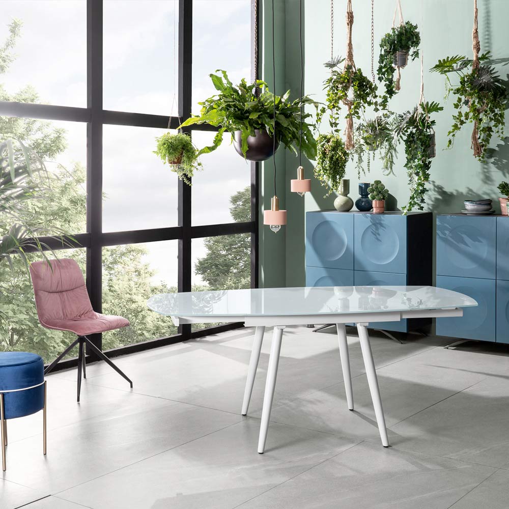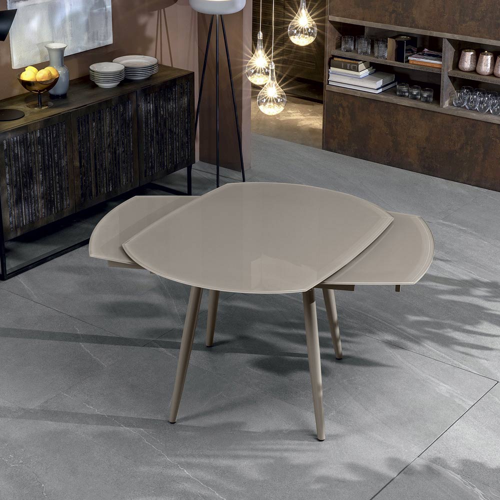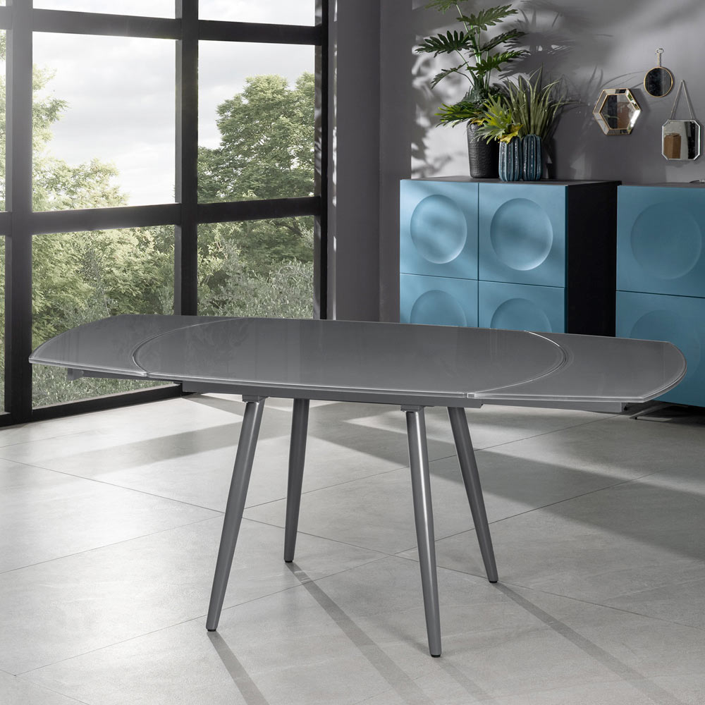 Table à rallonge Japan avec plateau en verre, de design moderne
