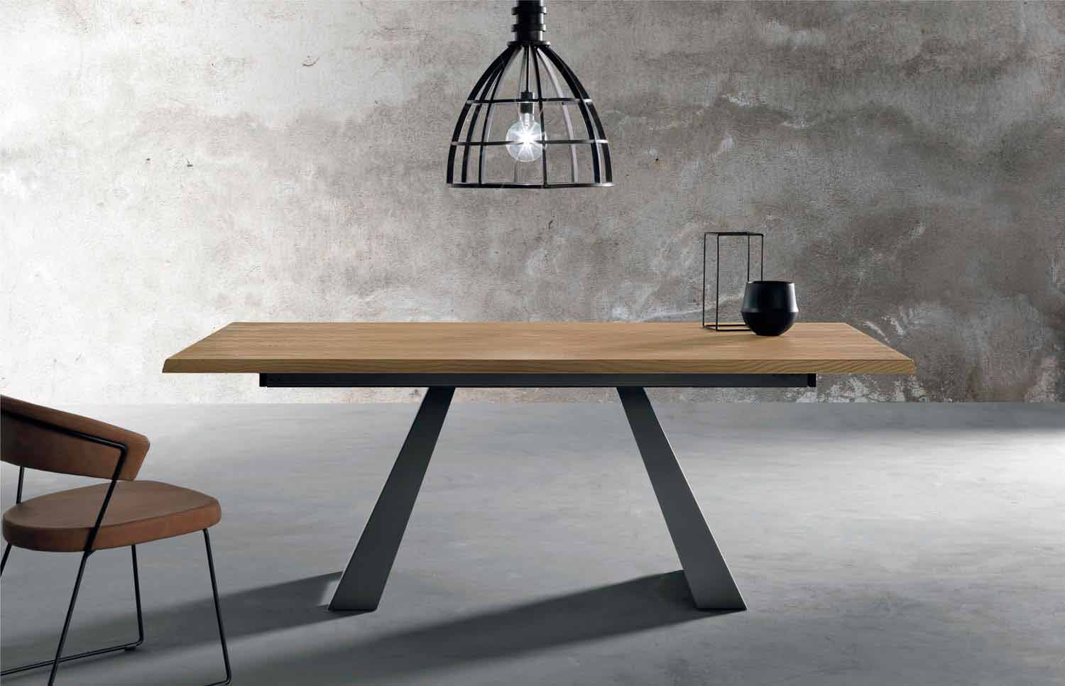 Zerba est la table à manger extensible à coulisse latérale adaptée à tout contexte d'ameublement grâce à l'union du bois et du métal.