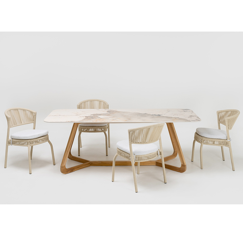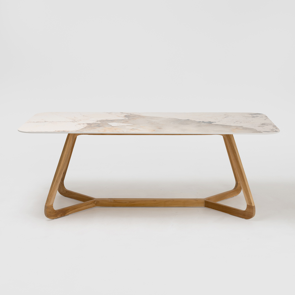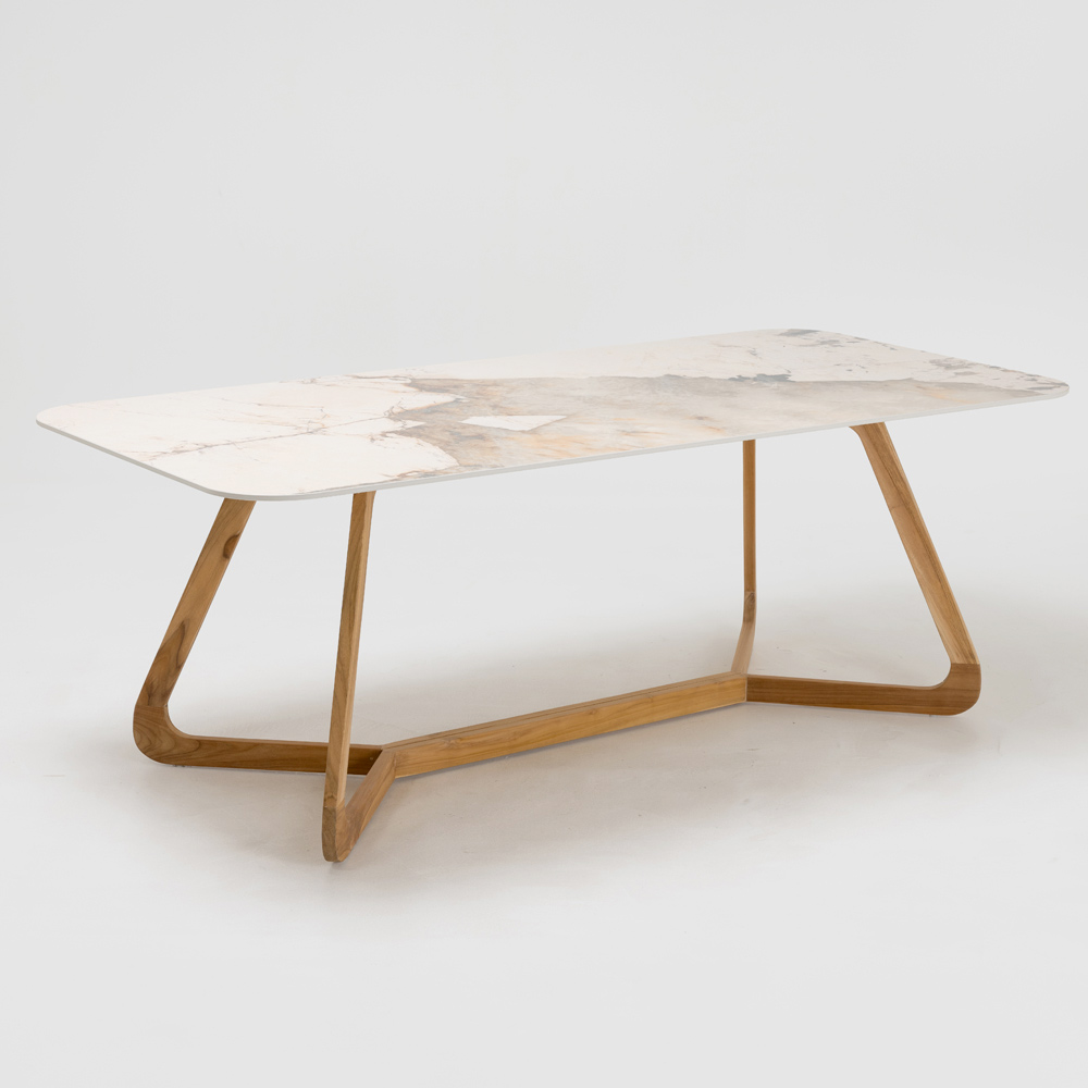 Table d'intérieur et d'extérieur en céramique et teck Fabriquée en Italie