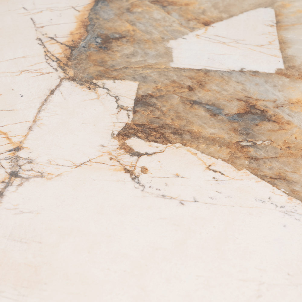 en céramique solid surface (grès) de 12 mm d'épaisseur avec finition Magellano, un sous-châssis en