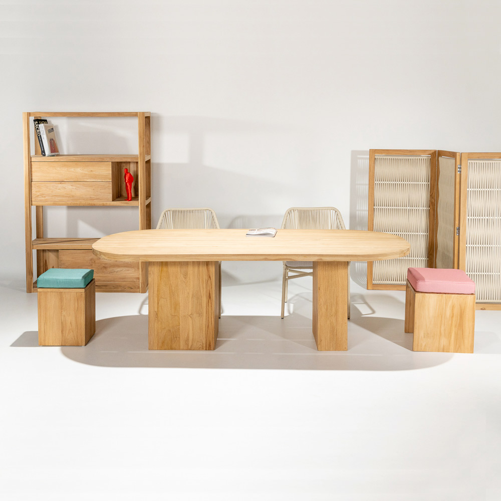 élément simple et harmonieux , idéal pour tout espace extérieur, terrasse, véranda, jardin ou bord de piscine, et y crée une atmosphère captivante. Le teck utilisé pour sa fabrication garantit