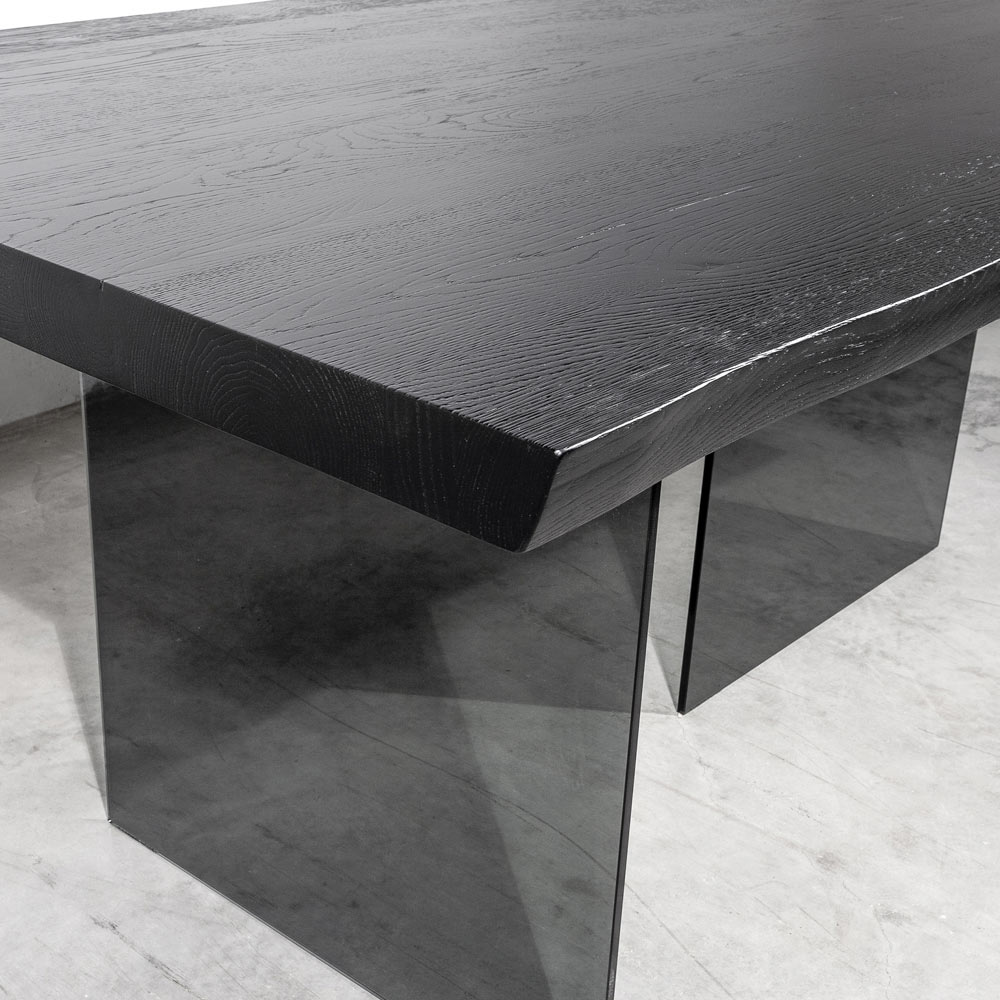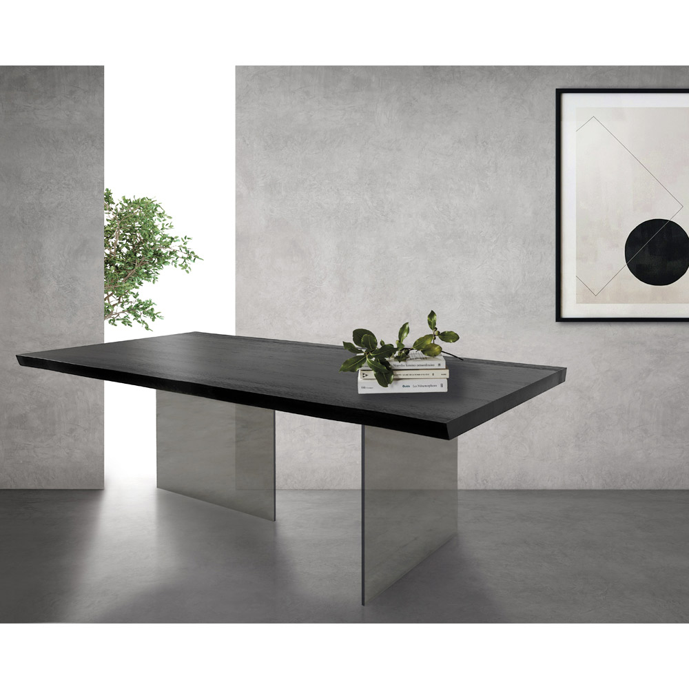 Table en bois plaqué chêne noué et base en cristal Made in Italy.