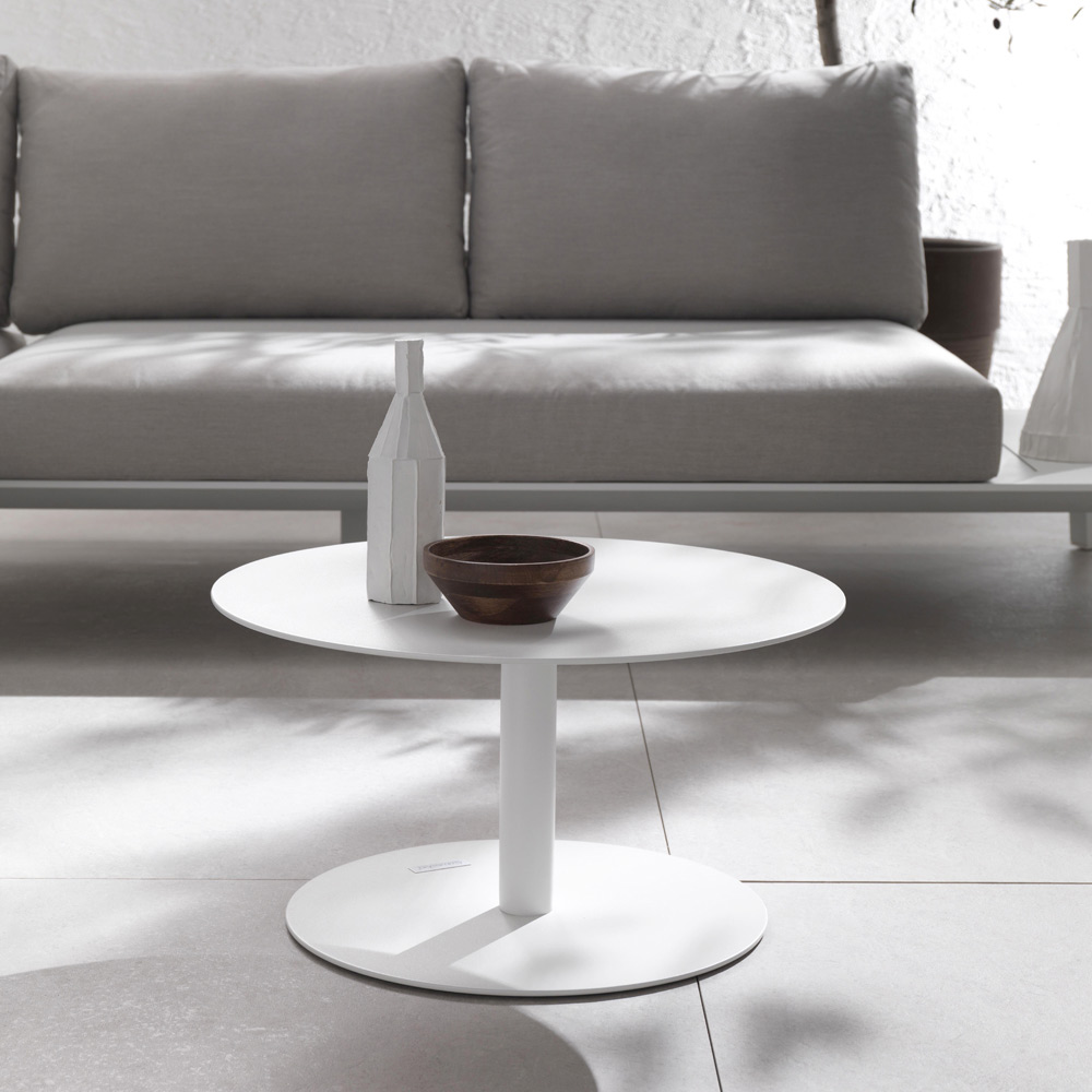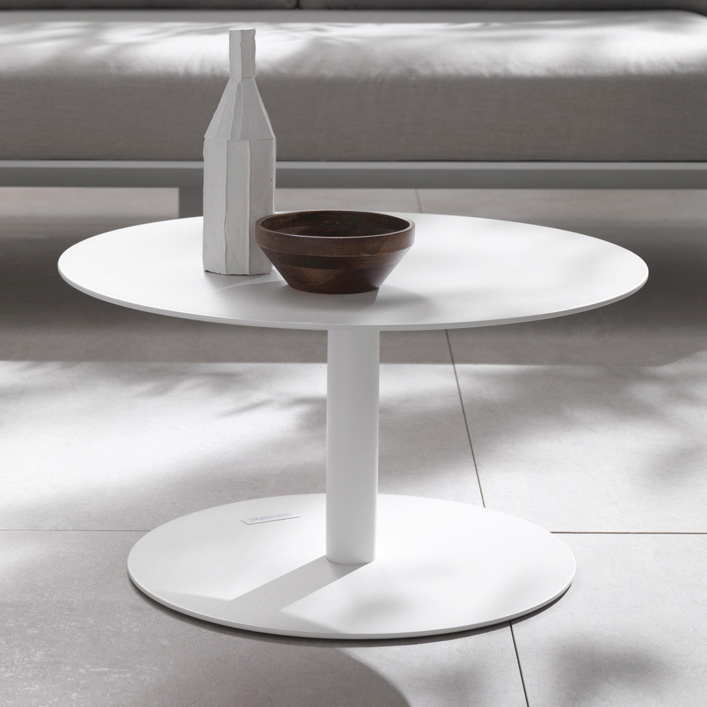 Table d'appoint pour le jardin composée d'un plateau et d'une structure en aluminiumpeint avec des poudres époxy en blanc.Caractérisée par un design doux, linéaire et simple, cette table basse est parfaite pour meubler n'importe quel environnement extérieur comme les terrasses, les piscines et les jardins, tout en trouvant sa place dans les différents espaces de vie intérieurs comme point d'appui fonctionnel.