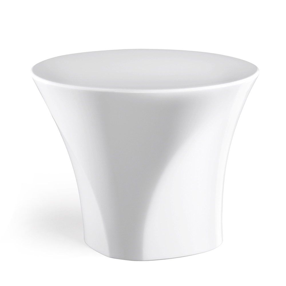 Table basse de jardin en polyéthylène mat fabriquée en Italie.