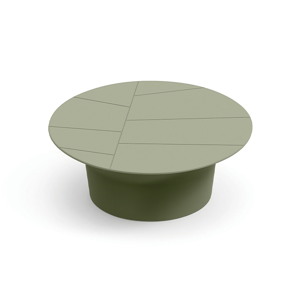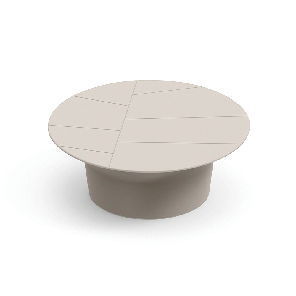 Cette table basse se distingue par sa forme ronde et épurée et ses proportions harmonieuses, ce qui en fait le complément idéal des espaces extérieurs contemporains. Son plateau, orné d' incisions géométriques linéaires , crée un effet graphique raffiné qui met en valeur sa surface.