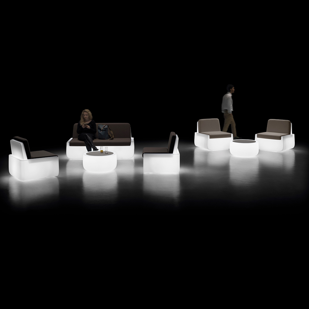 Grâce à l'éclairage à LED, le produit est mis en valeur par une lumière douce qui crée une atmosphère accueillante propice à l'ameublement d'espaces de détente extérieurs.