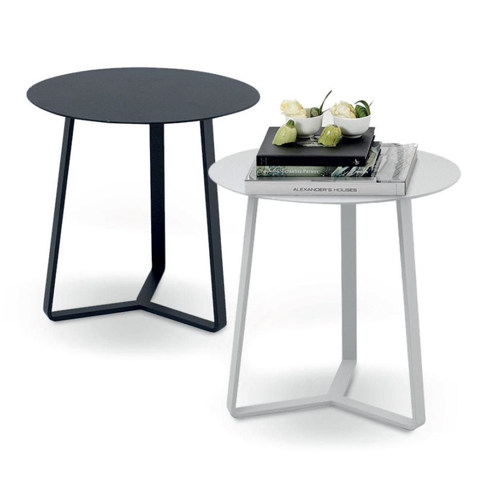 Table d'appoint pour le jardin composée d'un plateau et d'une structure en aluminium peint avec des poudres époxy en blanc et anthracite .