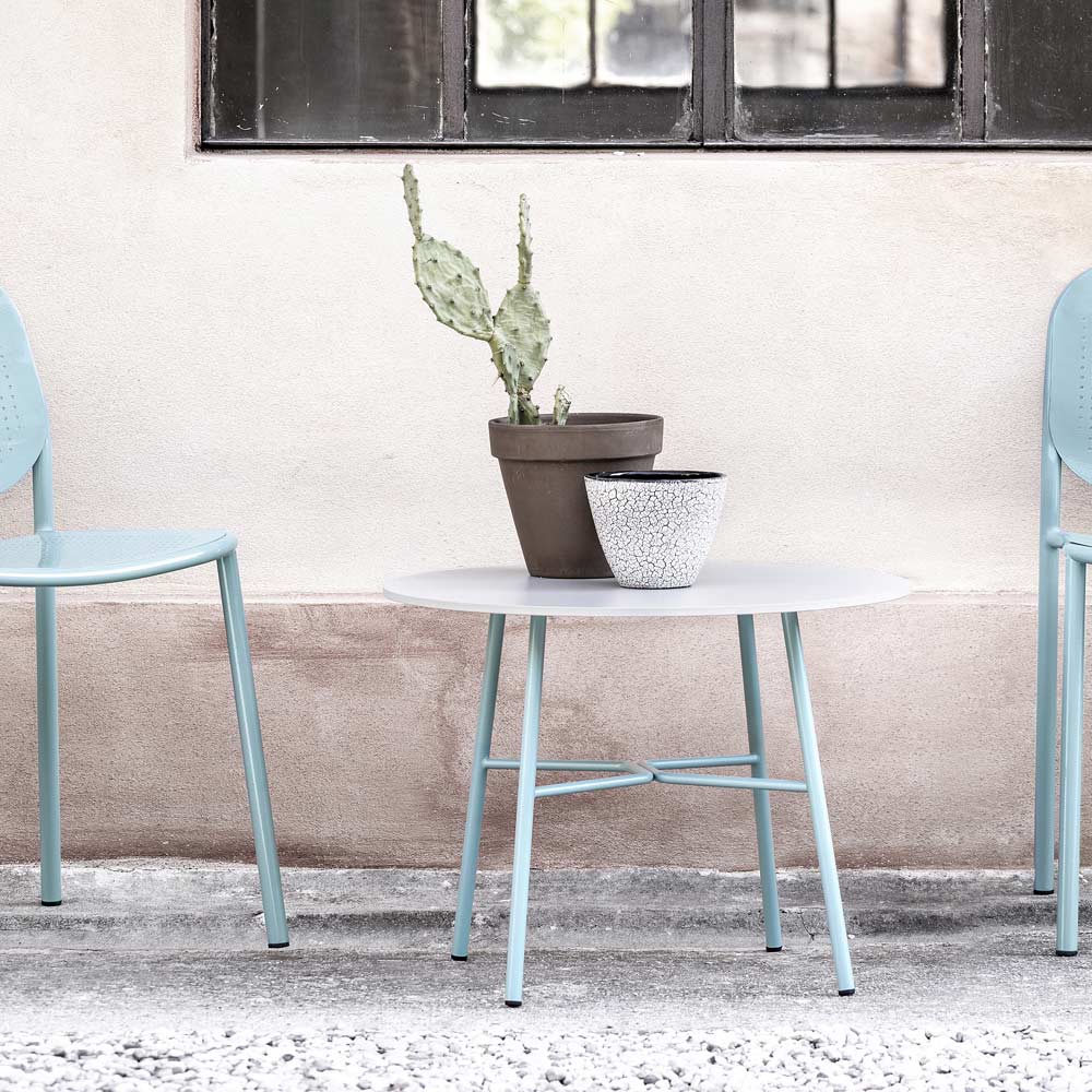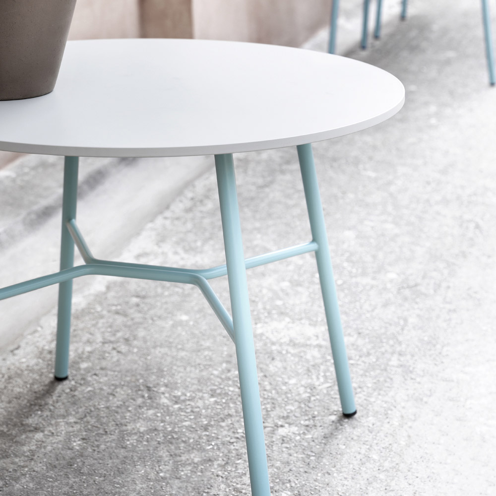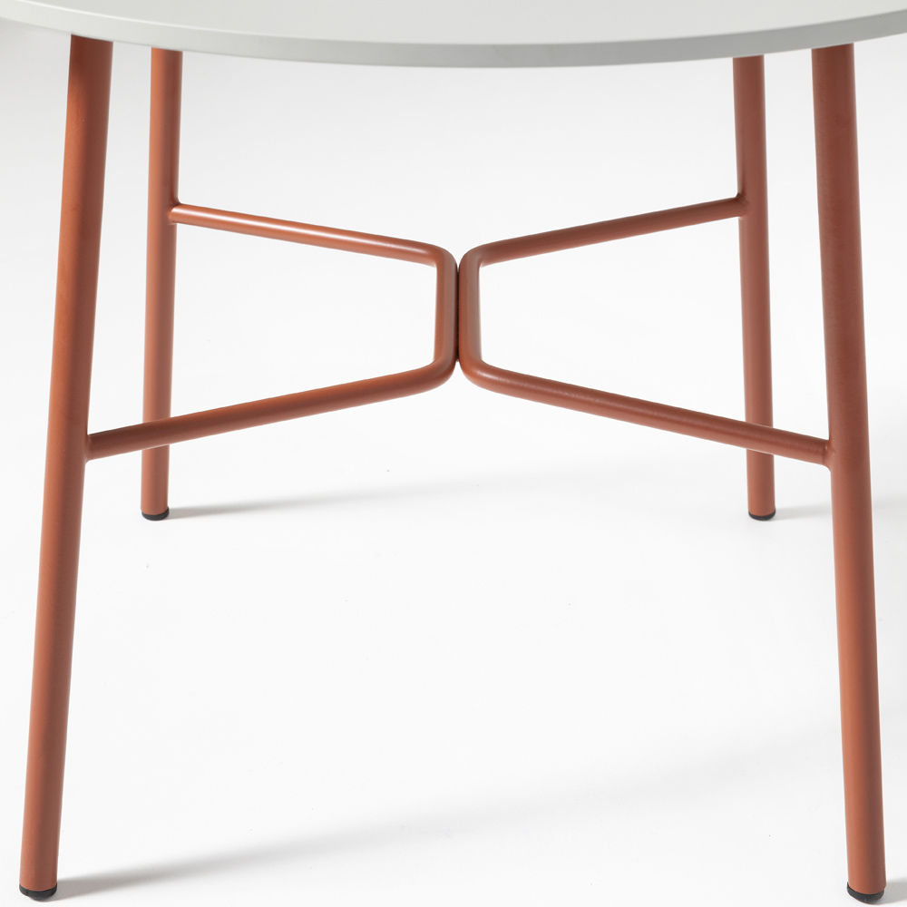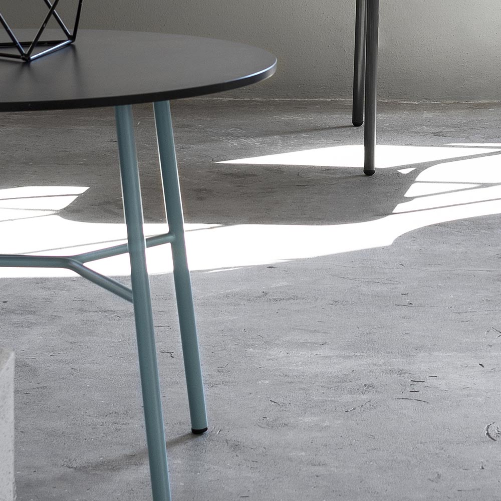 Table basse d'extérieur ronde en HPL et métal peint Made in Italy.