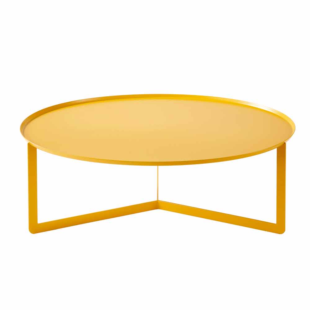 Table de jardin ronde et moderne, faite de boue ou de métal jaune maya, luxe made in Italy.