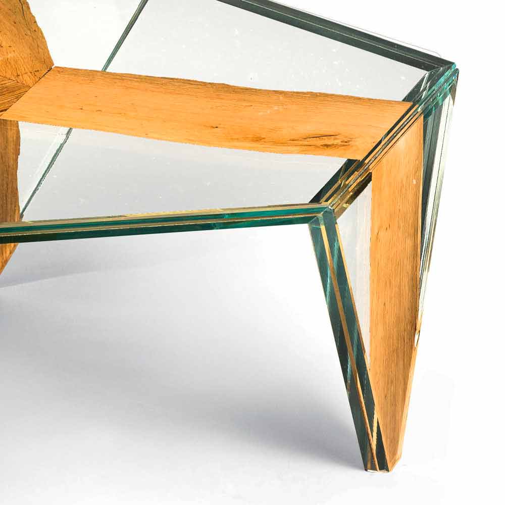 Table basse de forme en verre et bois Made in Italy - Mumbai