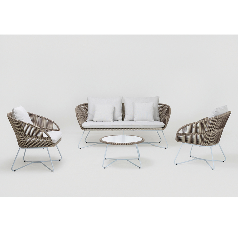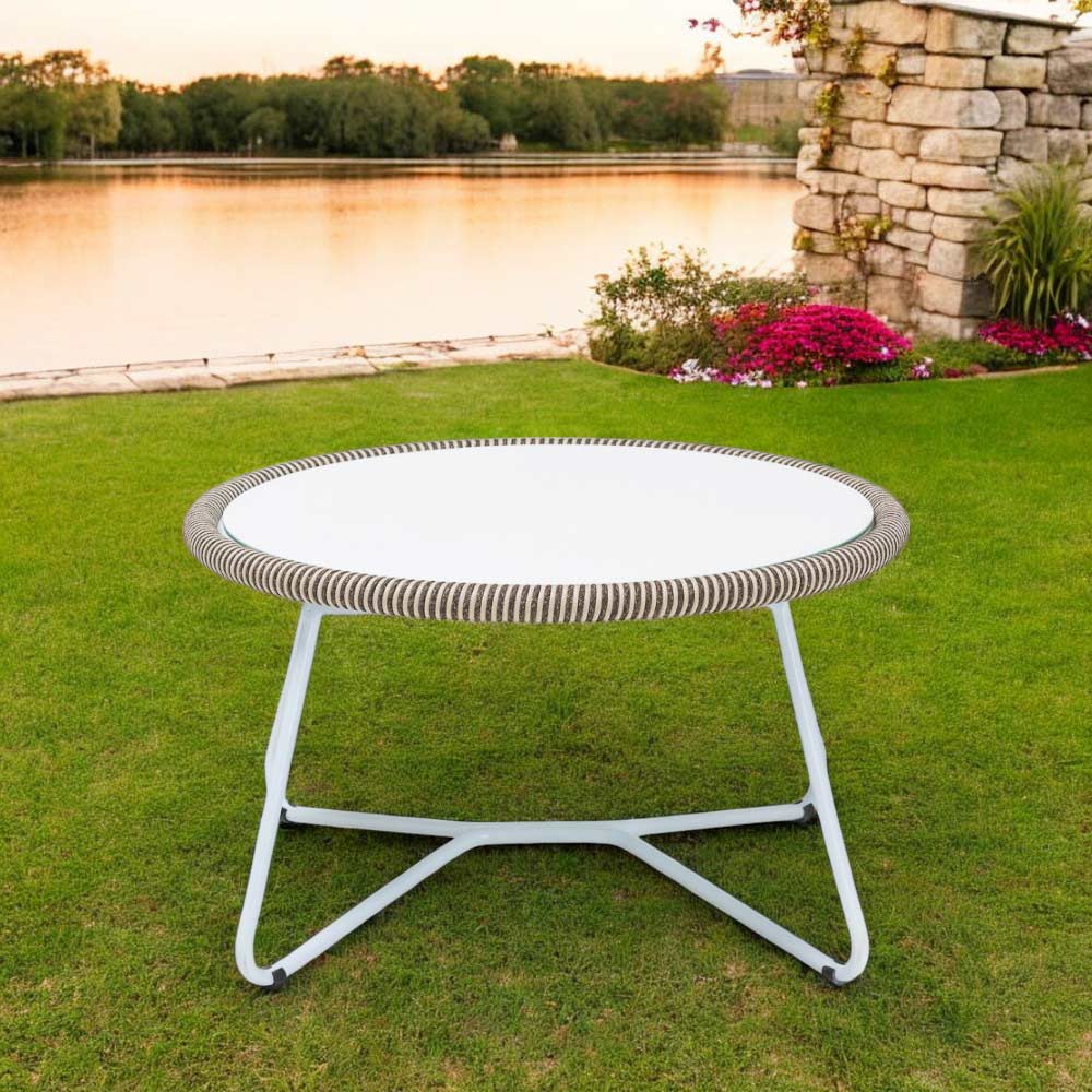 Cette table de jardin est l'incarnation de la rencontre entre le design et la fonctionnalité dans sa forme la plus pure et la plus raffinée du point de vue stylistique. Le plateau rond est habilement tressé, créant un effet visuel suggestif qui attire l'œil et invite au toucher. La base en aluminium peint confère à la table une légèreté presque éthérée, tout en assurant sa stabilité et sa résistance aux conditions extérieures.