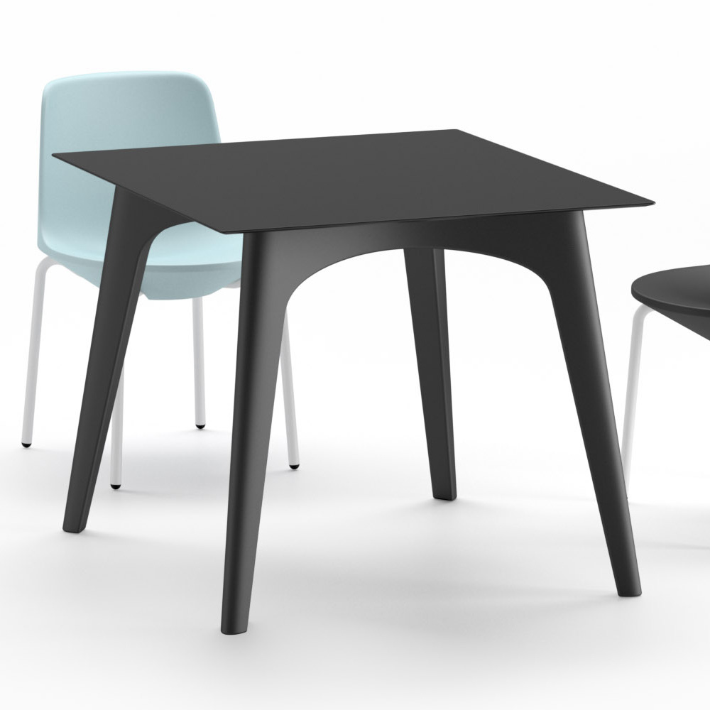 Table basse d'extérieur avec structure en polyéthylène mat et plateau carré en hpl, entièrement fabriquée en Italie.