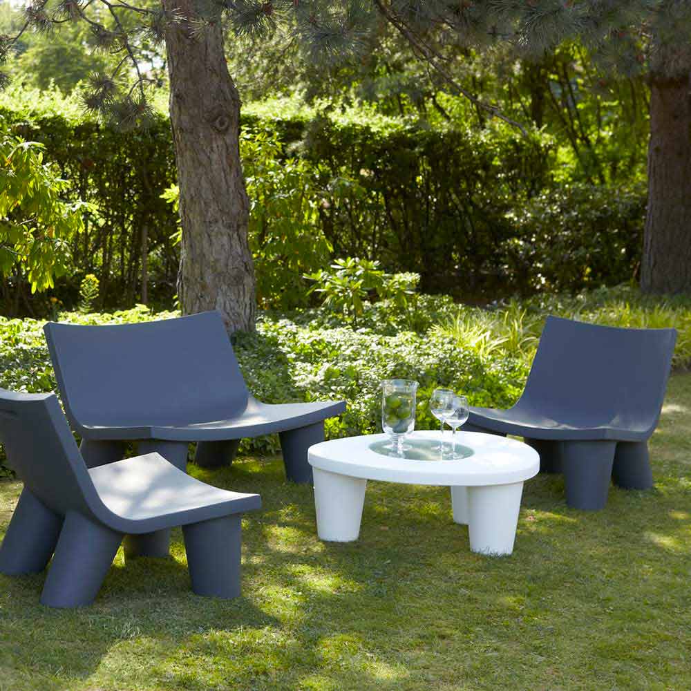 Table basse de jardin en polyéthylène et verre Slide Table Low Lita