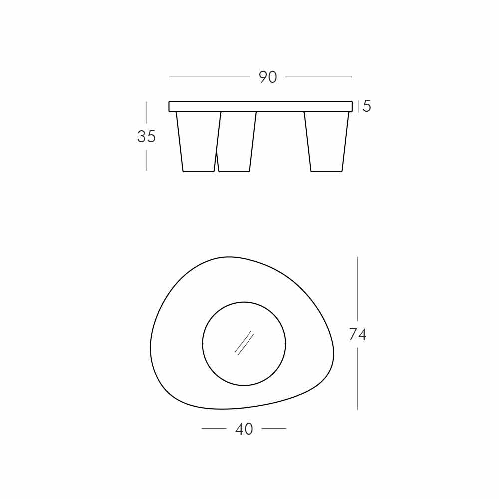 Il se compose d'une structure à trois pieds en polyéthylène et d'un plateau en verre trempé. Disponible en treize couleurs différentes et possibilité de demander également la version laquée avec un choix de couleurs différentes. Peut être combiné avec la chaise longue Low Lita.
