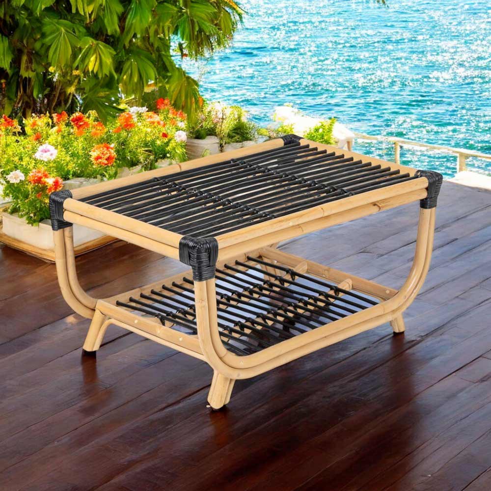 Table basse de jardin en rotin naturel tressé à la main - Catelyn