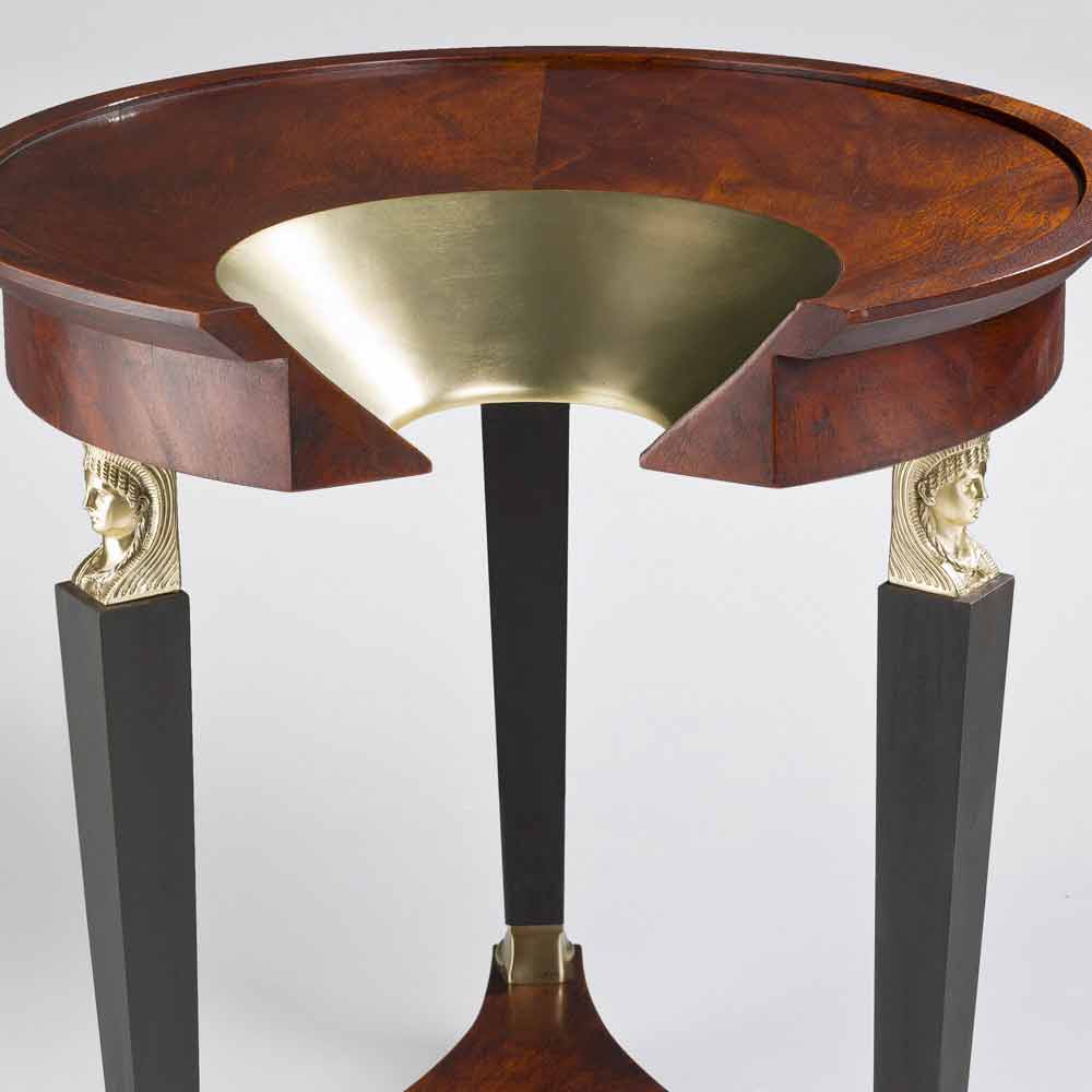 Table basse avec un trou. Le dessus est en verre. Les décorations sont en laiton naturel propre protégé. La structure est en acajou plume foncé. Les jambes sont en ébène noir mat. Le trou en finition feuille or bronzé. Venere est disponible aussi dans les finitions: vert fluo ou rose fluo. Demandez nous un devis à: info@viadurini.fr.