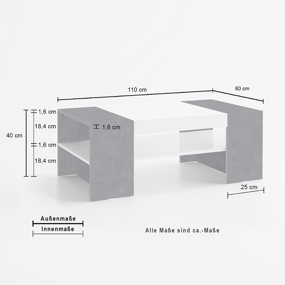 La table basse pour le salon a un design élégant, minimal et géométrique composé de deux plateaux en bois laqué blanc brillant durable et d'une grande structure de support disponible en 3 finitions.