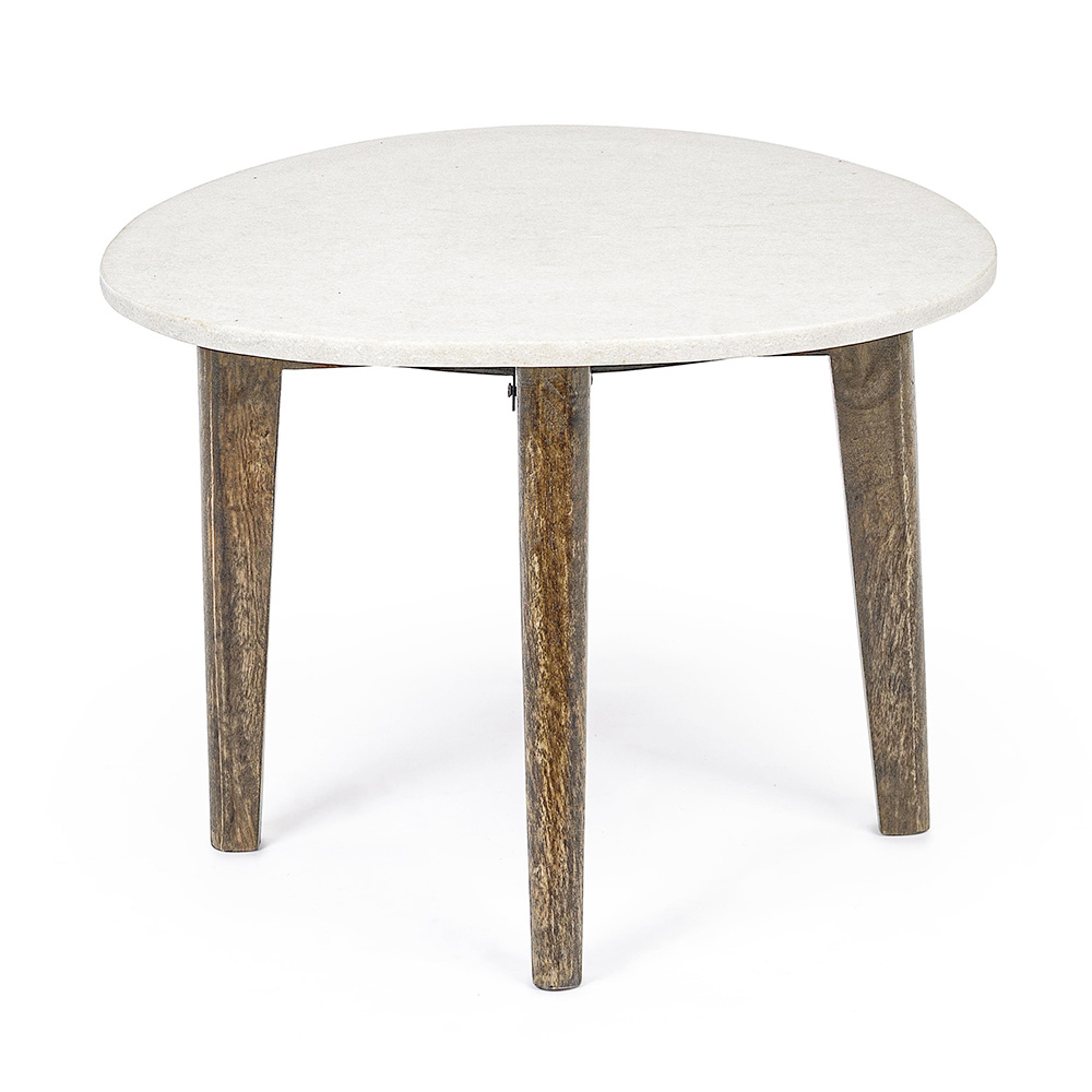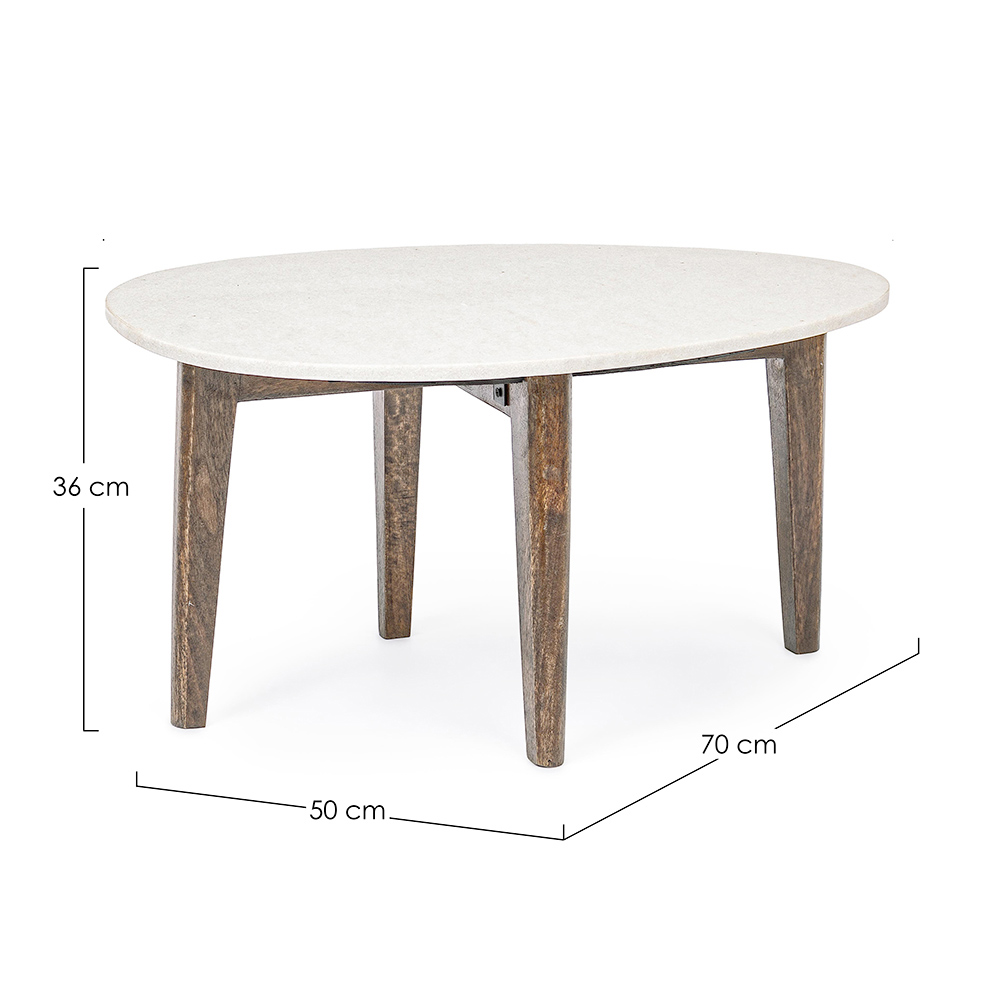 Table basse de salon en marbre et pieds en manguier - Desiderio