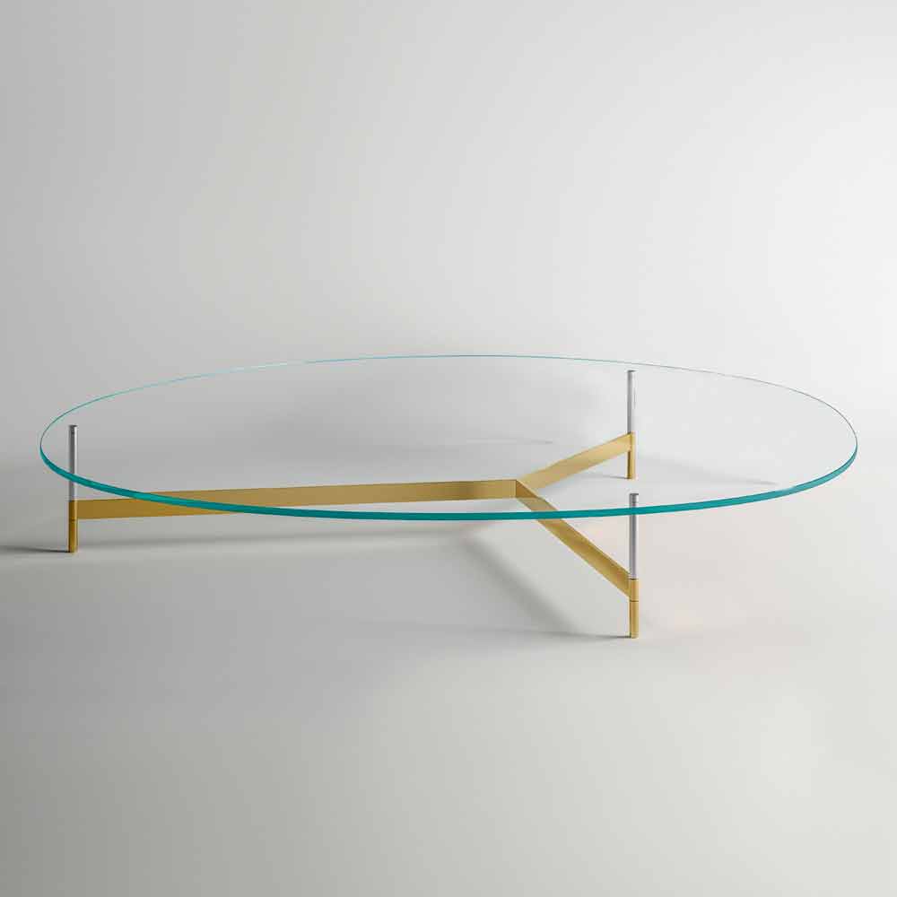 Table basse design avec plateau en verre et base en métal Made in Italy.