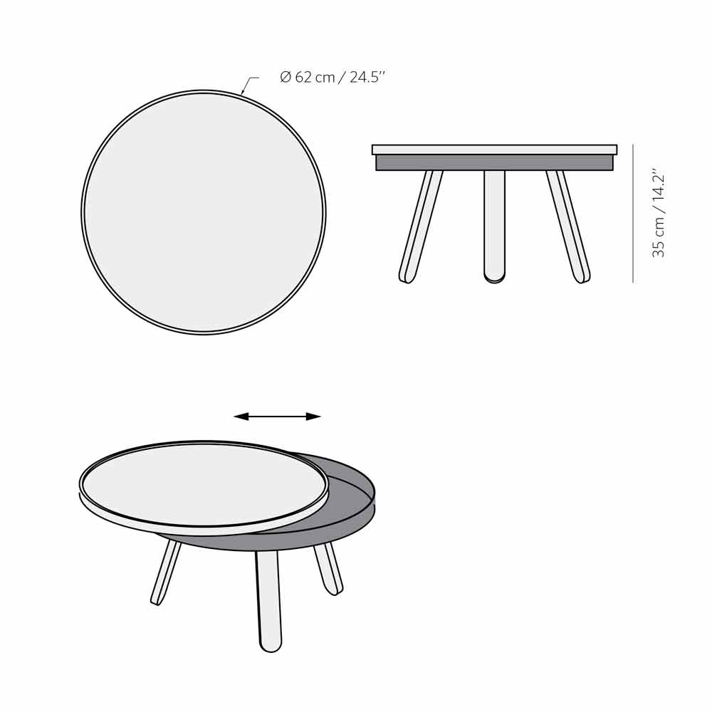 Mesure (table fermée) : diamètre 62 x H 35 cm