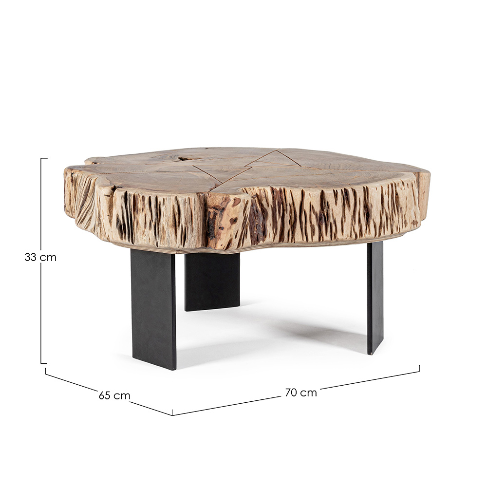 Table basse de salon en acier et tronc de bois d'acacia naturel.