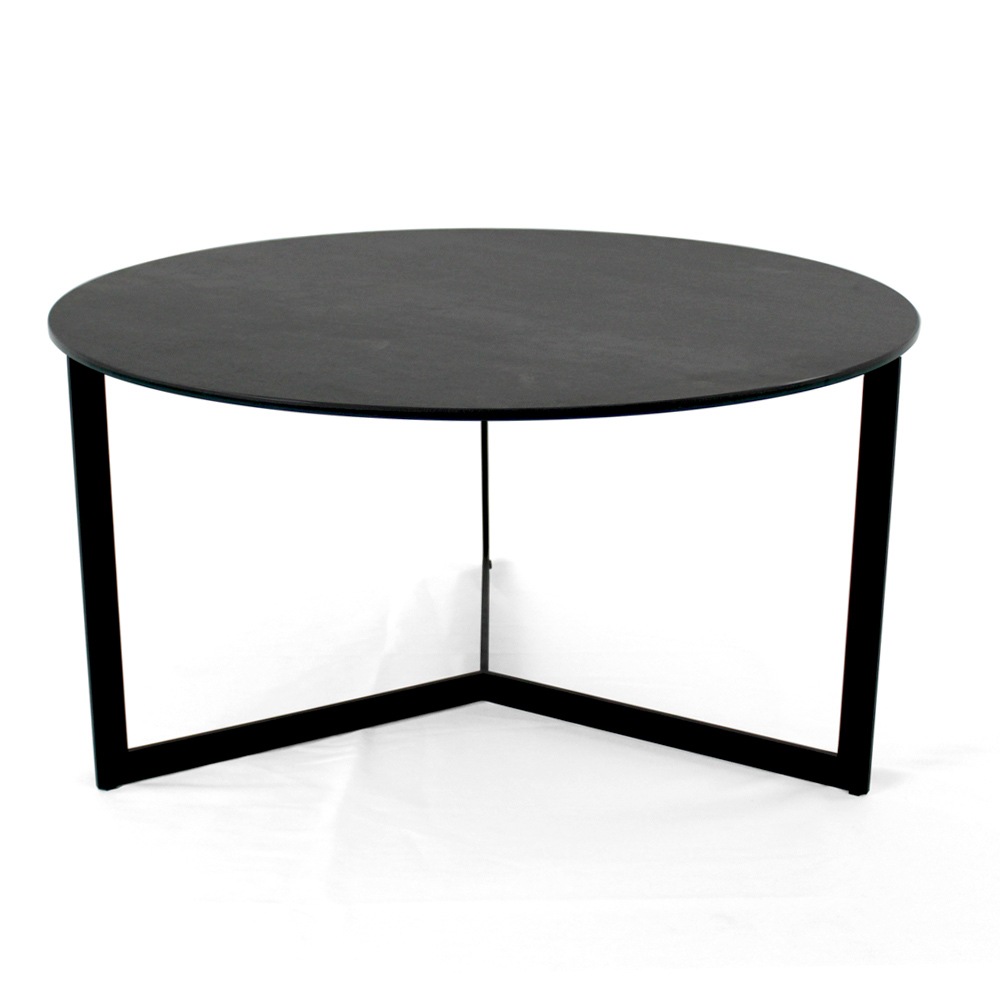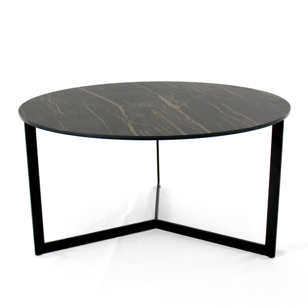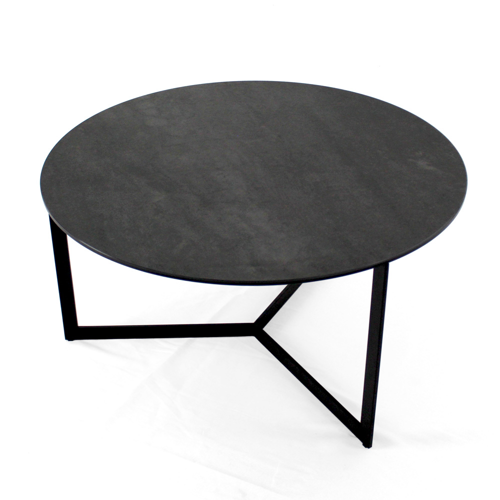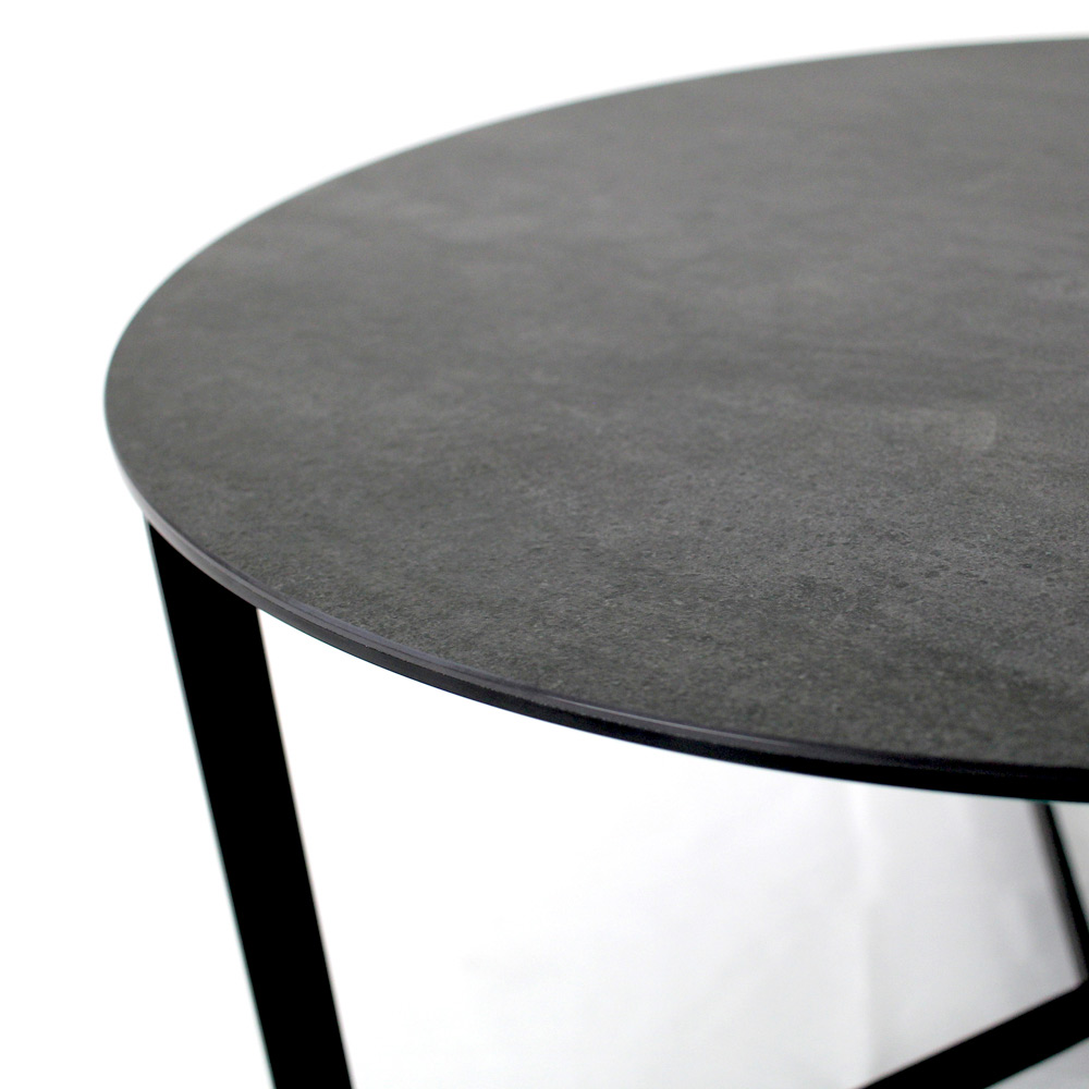 Table basse ronde avec base en acier peint et plateau en grès grès cérame