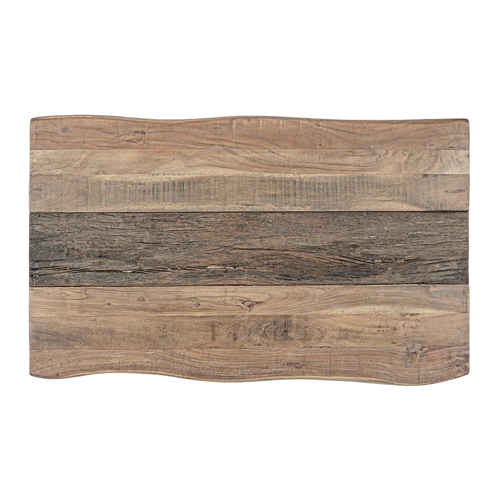 Table basse en acier et plateau en bois d'acacia avec insert recyclé.