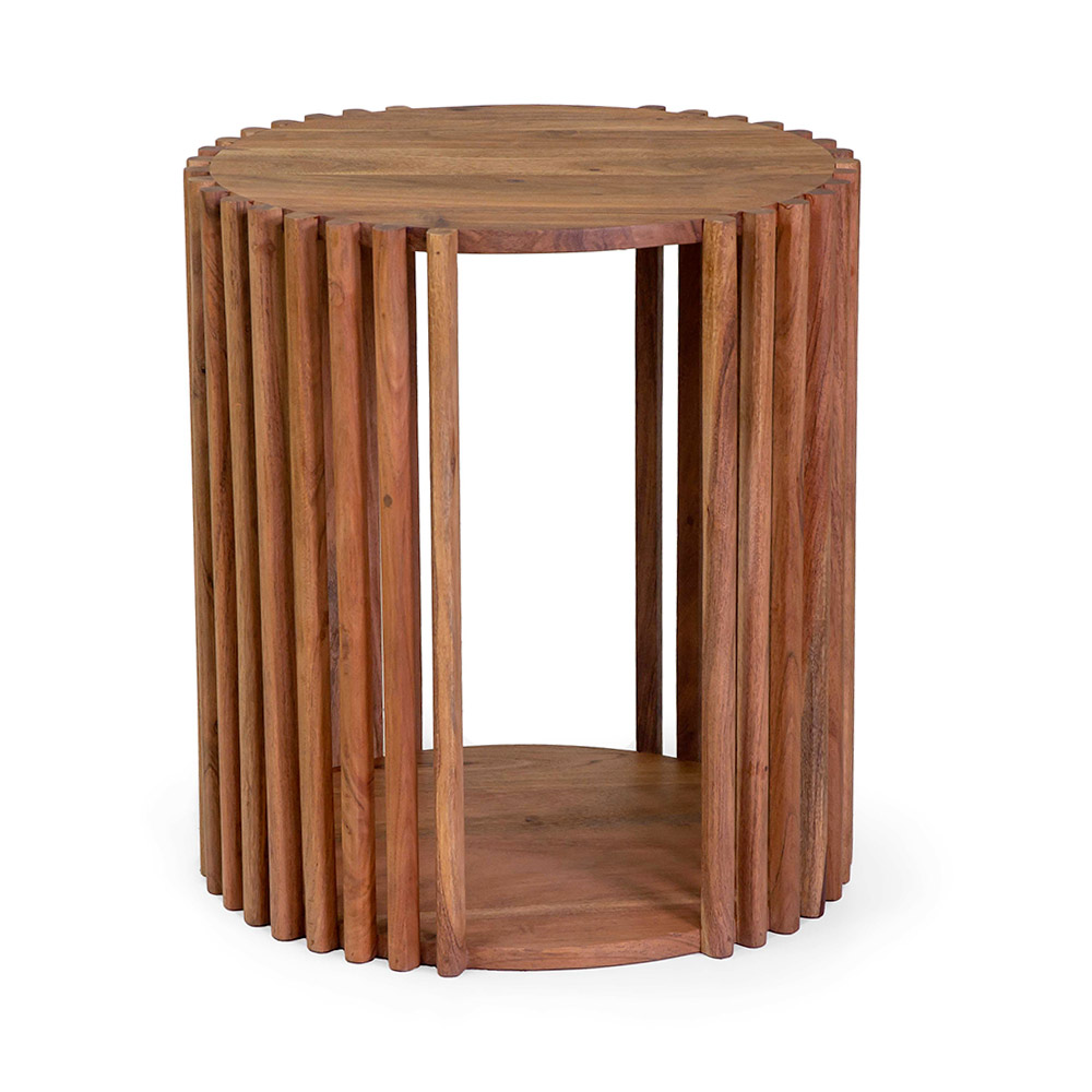 Le design des lamelles verticales crée un effet visuel dynamique et léger, parfait pour ajouter une touche d'originalité à n'importe quel environnement. La forme ronde et compacte la rend idéale comme table basse , table de chevet ou accessoire d'ameublement pour les coins douillets.