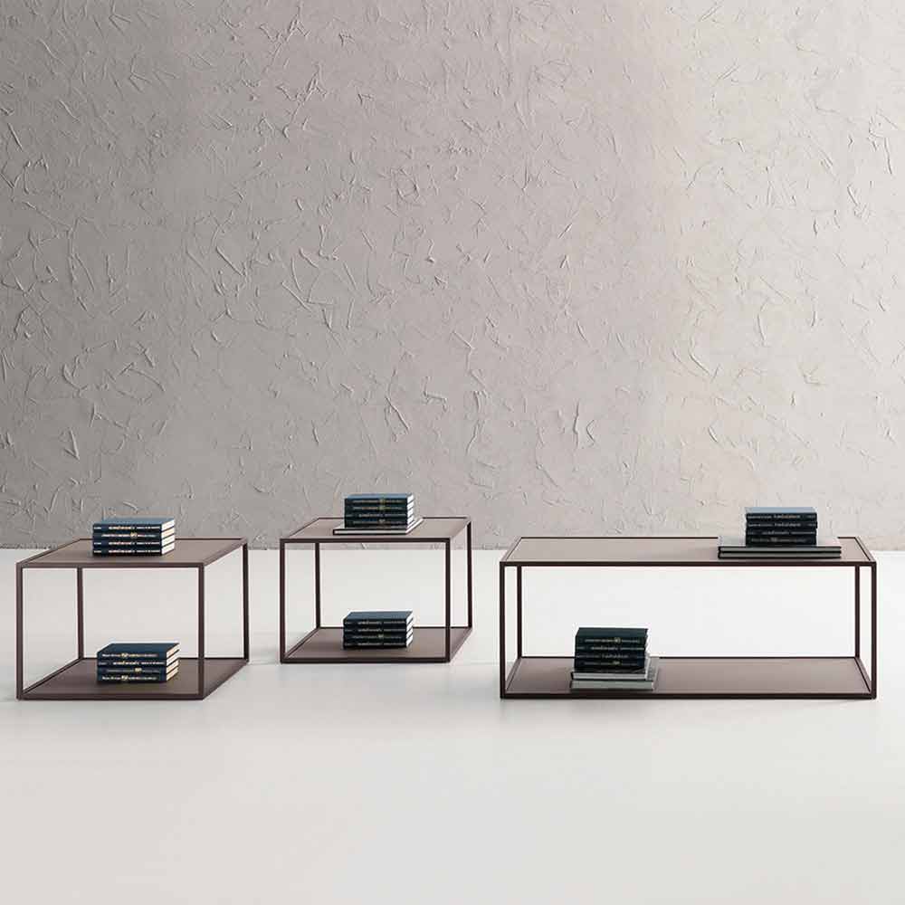 Table basse fabriquée en Italie avec structure en métal peint finition graphite et double plateau en verre satiné anti-traces de doigts finition boue. Un produit dont l'idée est basée sur la simplicité et l'essentialité pour donner vie à un meuble au style moderne et polyvalent capable de s'adapter à n'importe quel salon, apportant avec lui une touche innovante et élégante. La conformation particulière de la structure permet d'obtenir une double surface d'appui offrant ainsi la possibilité d'organiser divers objets utiles tels que livres, magazines ou télécommandes mais aussi des éléments décoratifs simples qui enrichissent le design et augmentent sa valeur en le mettant en valeur. l' esthétique exclusive .
