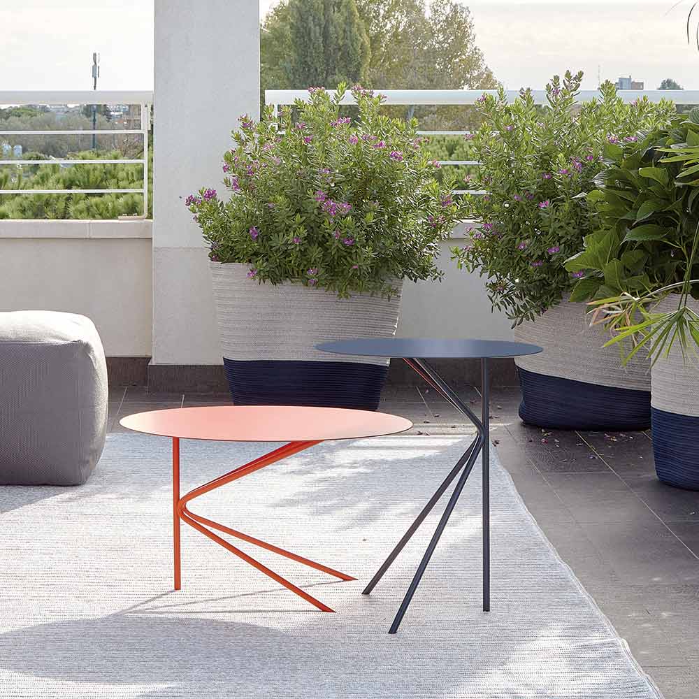Cette table de jardin a un design minimal avec un plateau rond, disponible en deux tailles différentes et deux hauteurs différentes qui peuvent être combinées ensemble pour un salon moderne et élégant.