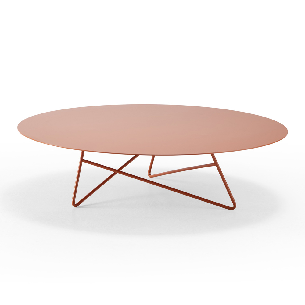 design rond extrêmement essentiel et moderne , avec une structure légère mais solide, qui soutient le plateau aux dimensions généreuses.