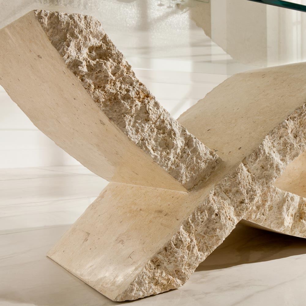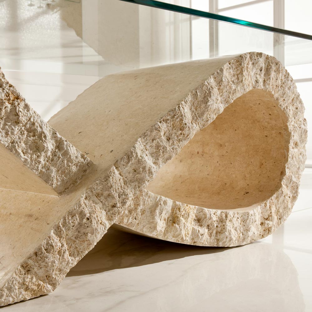 Les tables basses de la collection Fossil Stone sont uniques car elles sont fabriquées en véritable pierre fossile . Ce matériau précieux est le résultat de processus naturels survenus au cours des époques et des millénaires qui ont suivi la création de la terre.