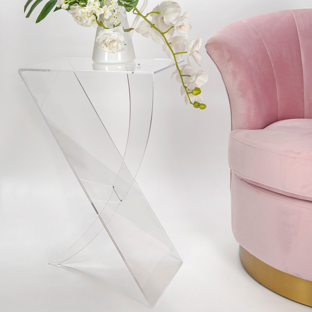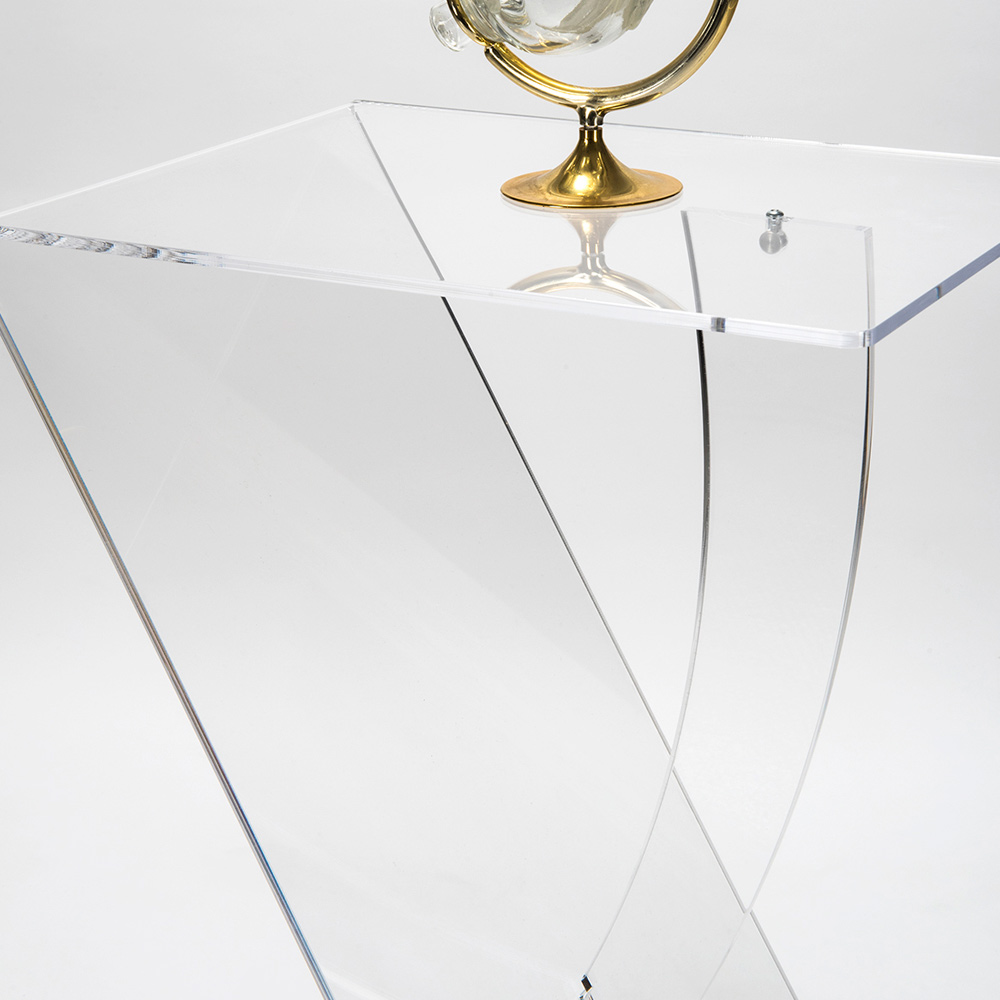 Cette table basse est entièrement réalisée en plexiglas transparent, un choix qui renforce sa polyvalence et sa résistance. Avec sa double étagère, il offre un espace supplémentaire pour vos livres, verres ou tout objet que vous souhaitez garder à portée de main, en conservant toujours un look soigné et chic.