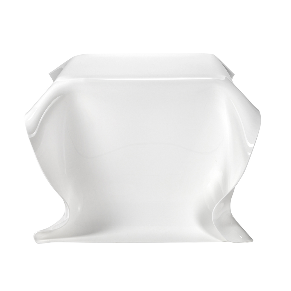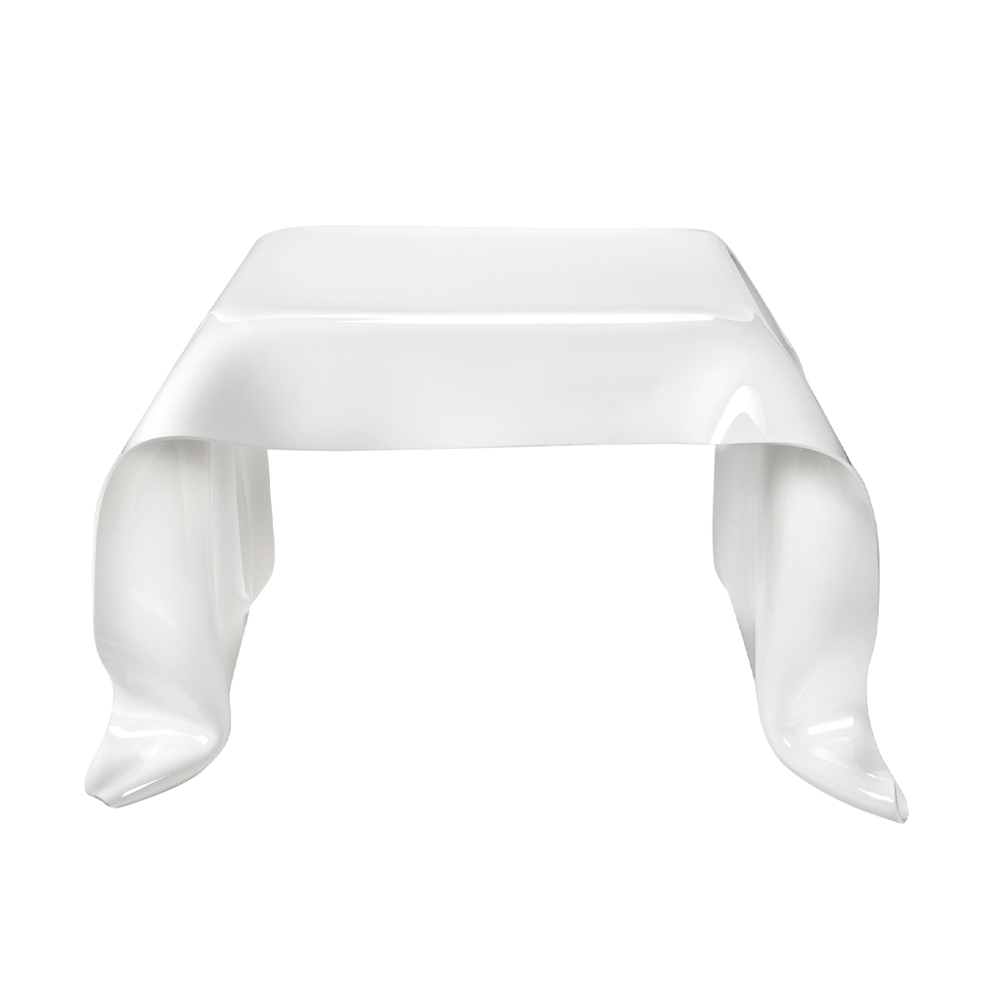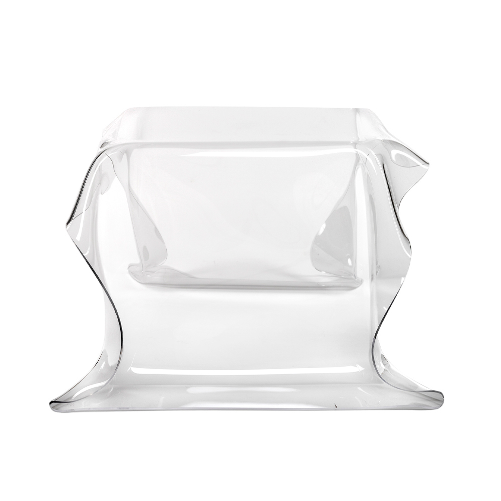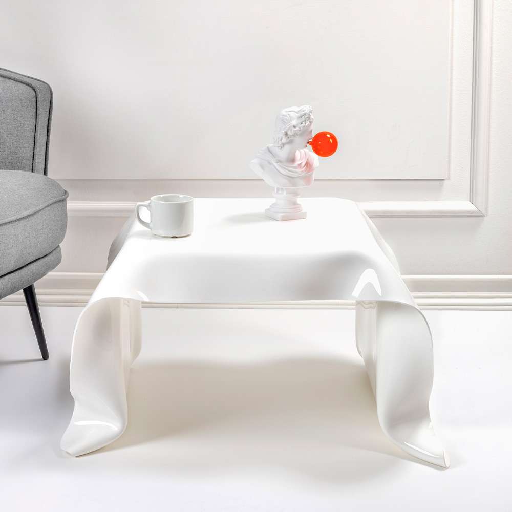 Réalisée avec une feuille de plexiglas PMMA polymère 100% vierge , la table basse est le résultat d'un processus artistique unique : chaque pièce est drapée à la main à haute température , transformant le matériau en un objet au style unique et irremplaçable. La technique utilisée confère à chaque table basse un caractère distinctif, presque comme si chaque courbe racontait l'histoire de sa création.