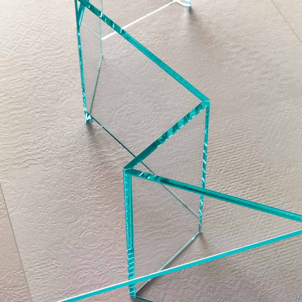 Fabriqué entièrement en verre extra-clair pour la base et le dessus, c'est un meuble fabriqué à la main en Italie avec des matériaux de haute qualité, idéal pour le salon.