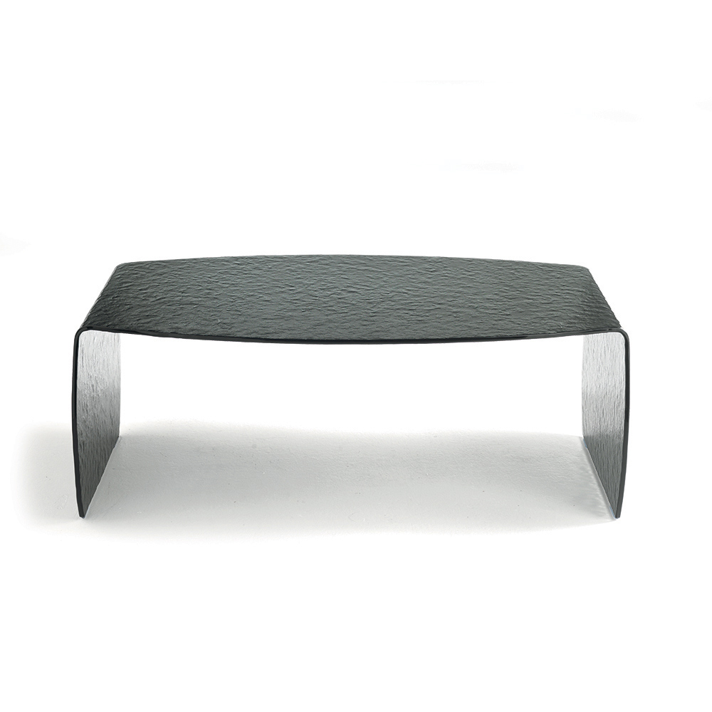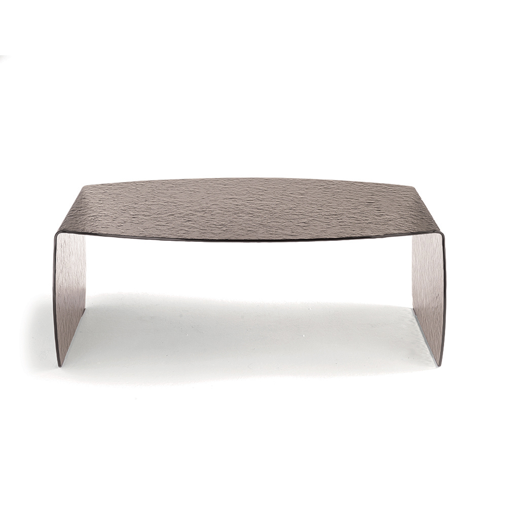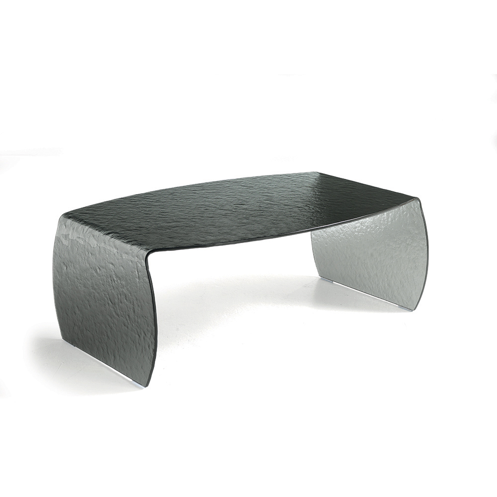 Fabriquée à partir d'une seule feuille de verre transparent incurvé , cette table basse présente une finition martelée qui lui confère de la profondeur et crée un élégant jeu de reflets. La texture du verre sublime la lumière naturelle, rendant la pièce plus lumineuse et aérée.