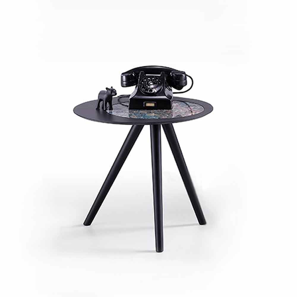 Table basse moderne avec plateau rond en grès marbré Made in Italy.