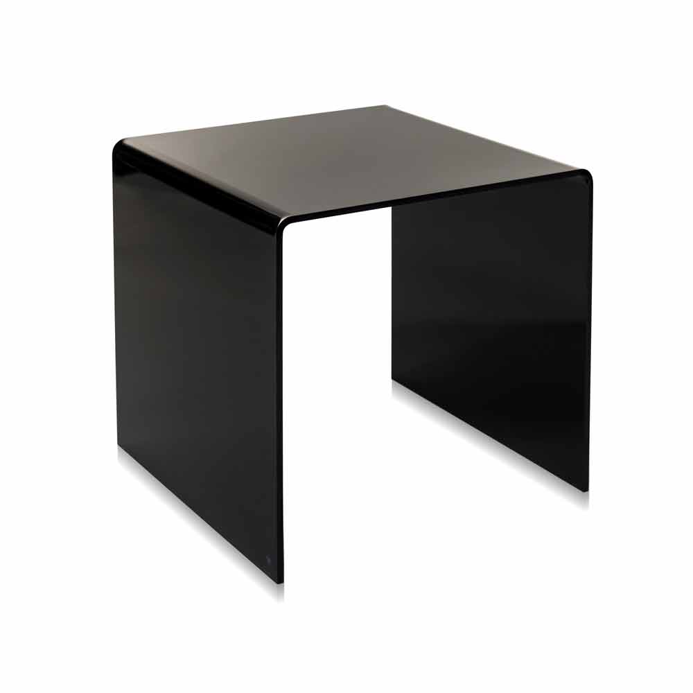 Table d'appoint/table de chevet noire, inspirée des géométries des années 80. Réalisée en plexiglas PMMA de polymère 100% vierge, façonnée au laser et modelée à haute température, Terry Small dispose d'une structure autoporteuse. Cette table peut être vendue individuellement mais la combinaison avec sa jumelle TERRY BIG, la rend encore plus parfaite.