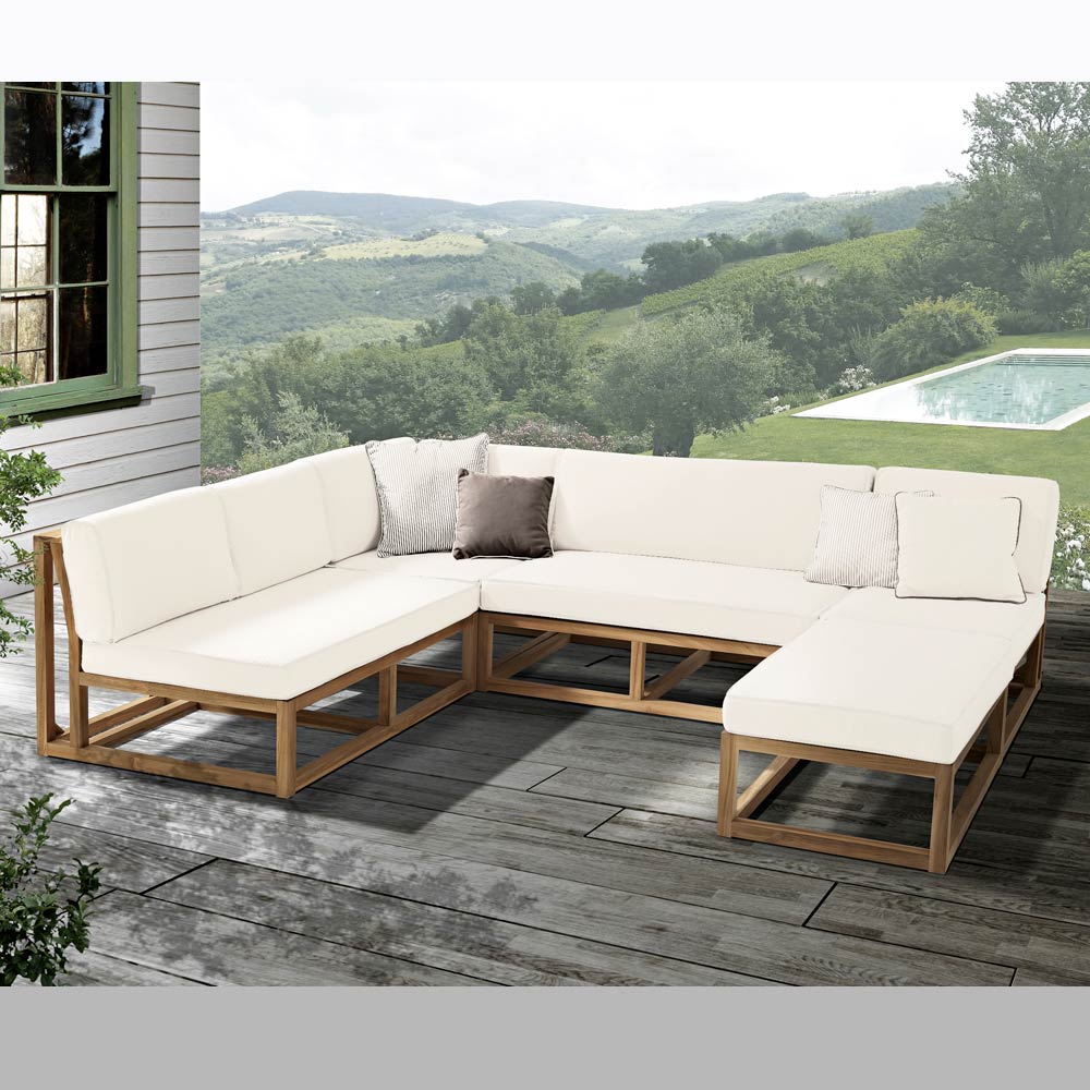 Nous ne recommandons pas de placer des meubles en teck neufs à l'extérieur sur des sols en pierre poreuse, au moins jusqu'à ce que le processus d'apparition de l'huile se soit estompé. Nous ne recommandons pas de laisser les coussins en contact direct avec les surfaces en teck pendant ce processus, car ils seront très probablement tachés (les tissus tachés par l'huile de teck naturelle peuvent encore être nettoyés avec de l'eau et du savon neutre). La quantité d'huile qui sort du teck pendant les premiers mois sera plus abondante et donc plus susceptible de causer des taches sur les surfaces et les tissus.