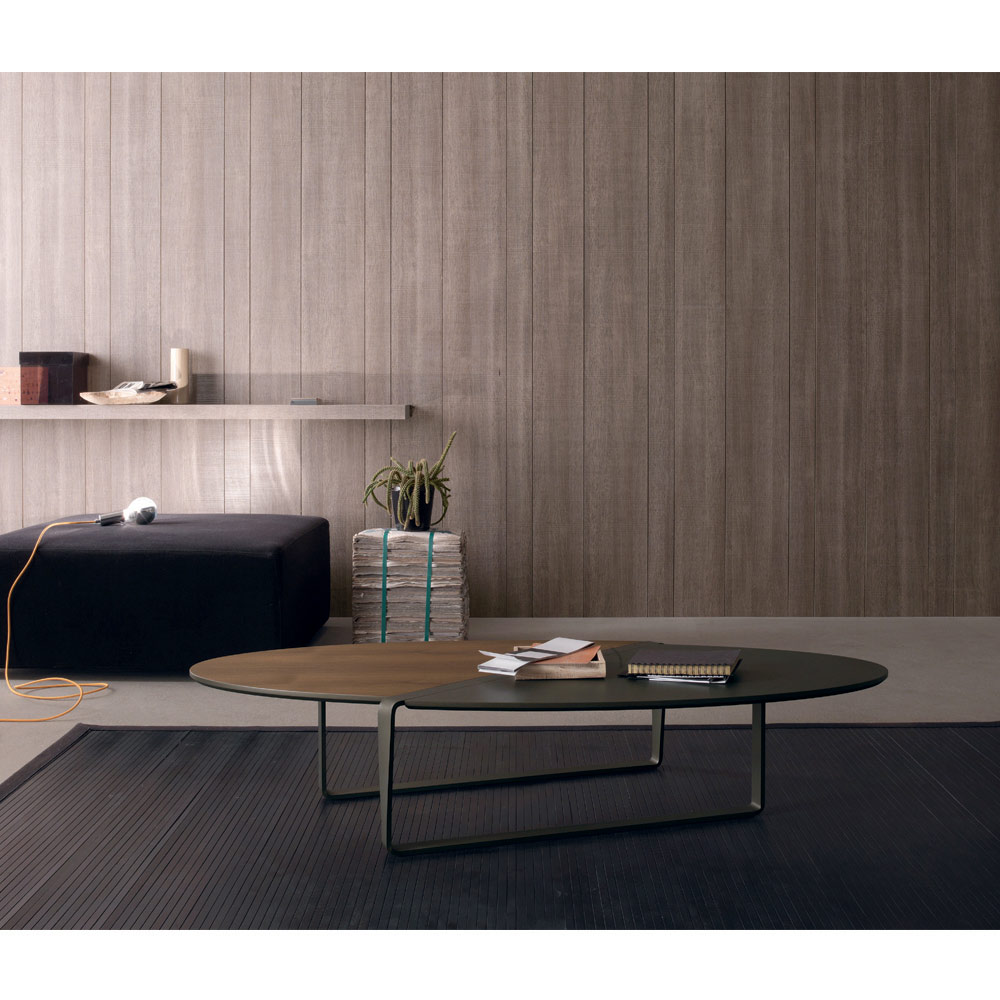 Table basse ovale en métal et plateau en bois bicolore - Comacchio