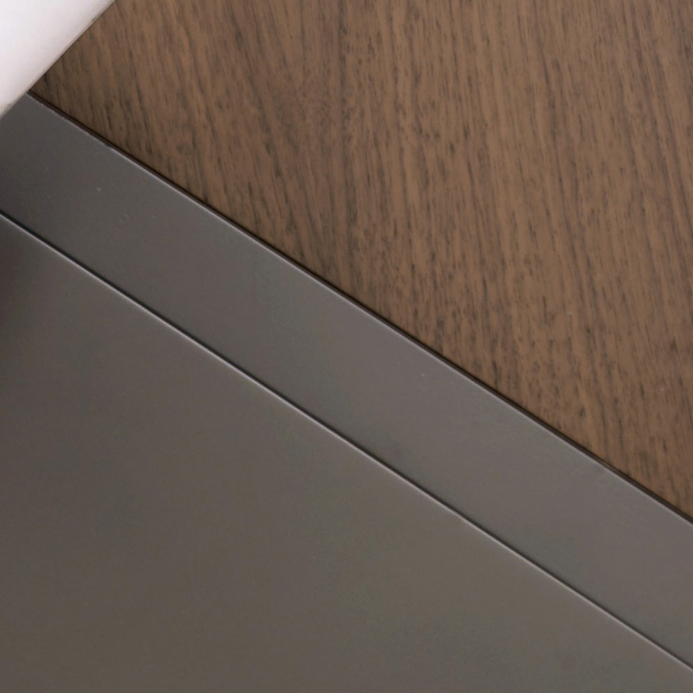 Cette table basse audesign ovalecomprend une base en métal enduit de poudre de graphite gaufré et un plateau en bois bicolore en placage de noyer canaletto et en bois laqué bronze métallique . La particularité du complément est donnée par le plateau réalisé en deux finitions pour les amateurs de lumière et de couleur. La structure métallique sépare et unit les deux moitiés à la fois dans un jeu de contrastes qui donne vie et caractère à l'espace environnant.
