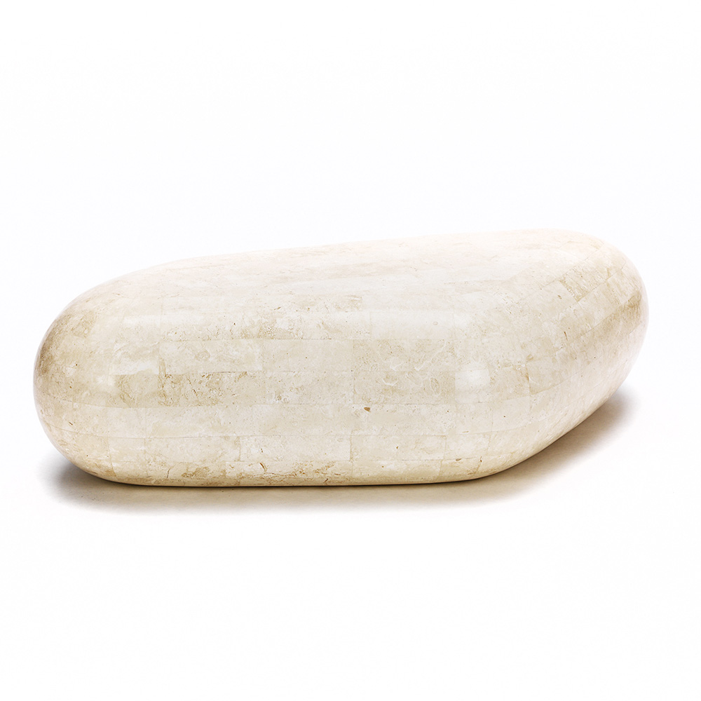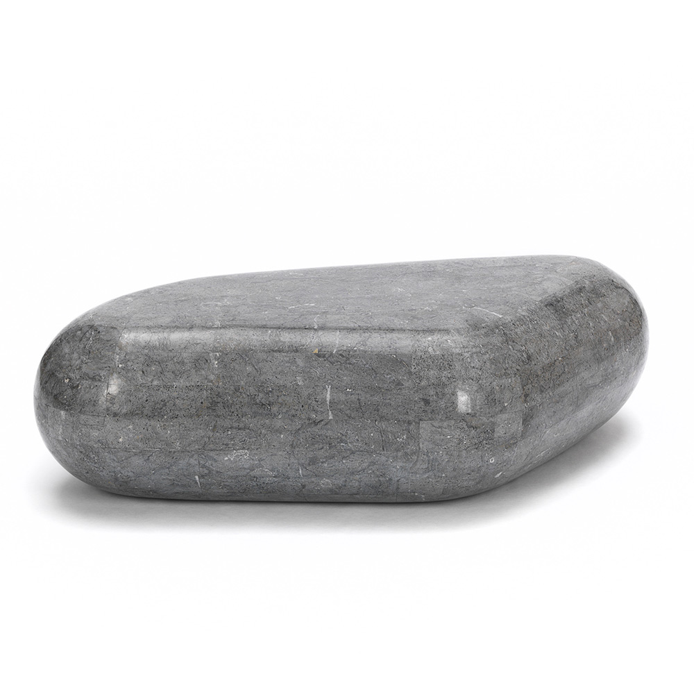 La table basse Avenue est constituée d'un bloc rhomboïdal de pierre fossile.