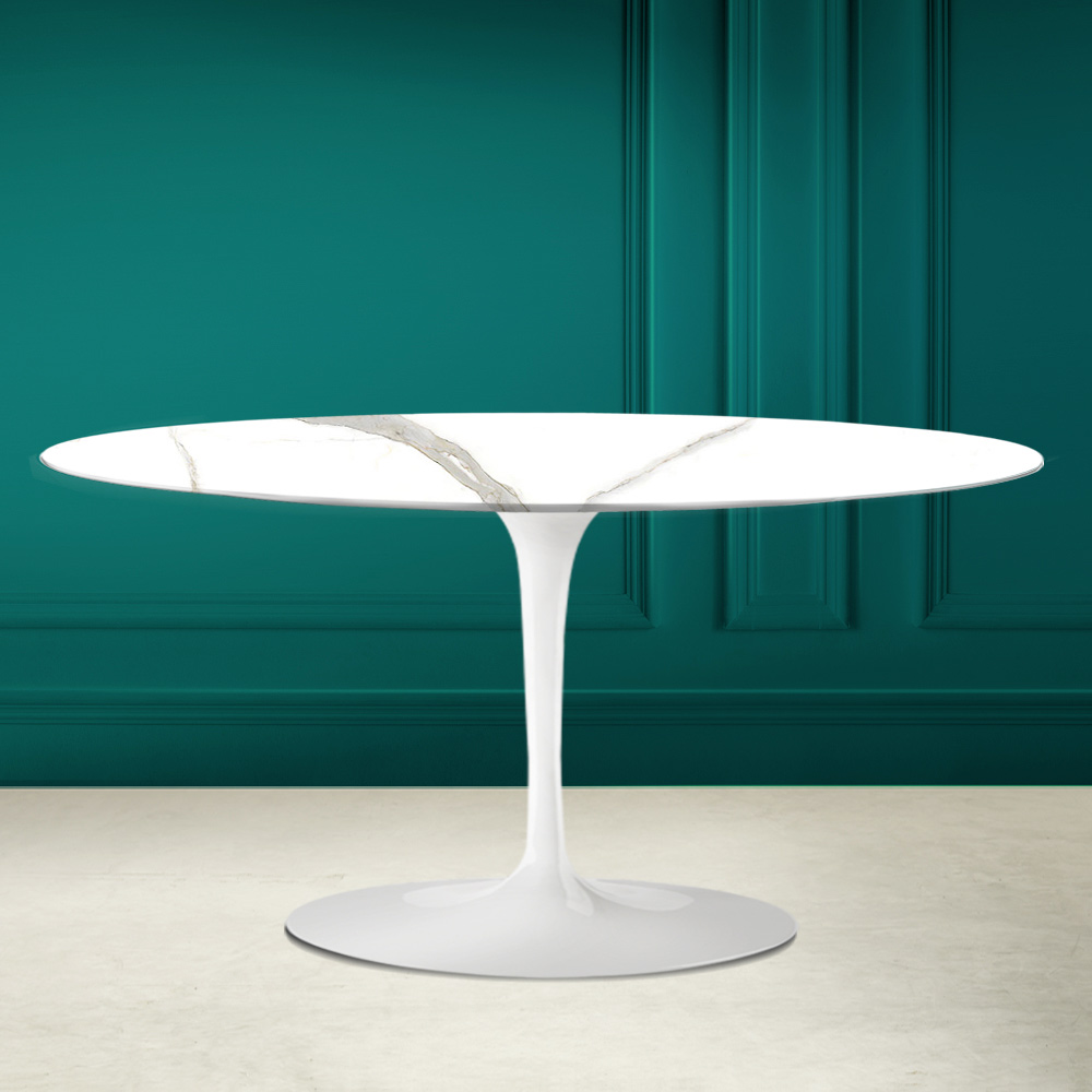 Table basse ovale Tulip Saarinen H 41 en Calacatta Michelangelo Made in Italy - Scarlet