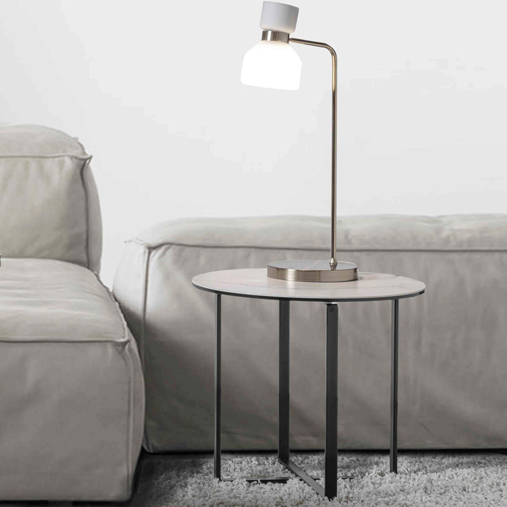 Table basse ronde avec plateau en verre céramique marbre blanc - Anselmo