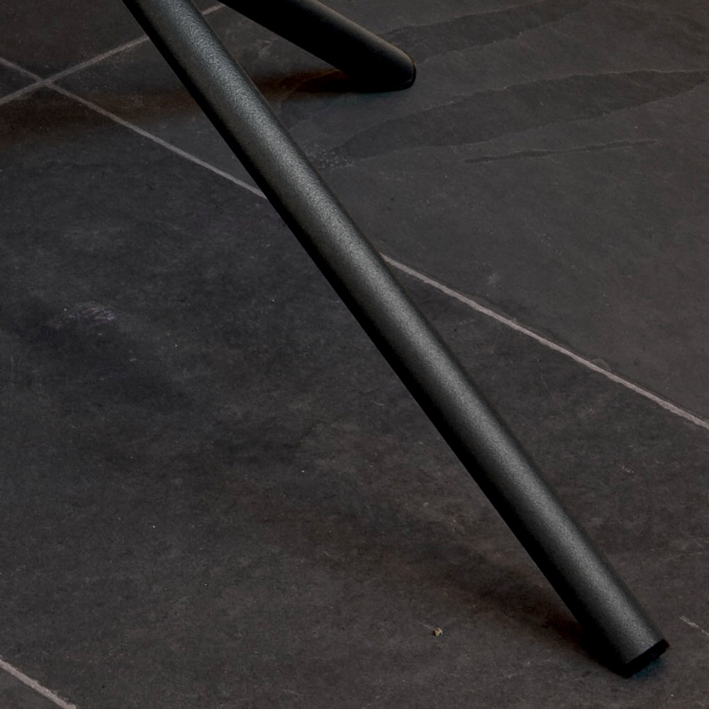 Cette table basse ronde estdotée d'une structure tissée enmétal enduit de poudre de graphite gaufré et d'un plateau en céramique mat sur panneau. La particularité du complément est donnée par l' intersection des pieds pour un design raffiné et élégant.
