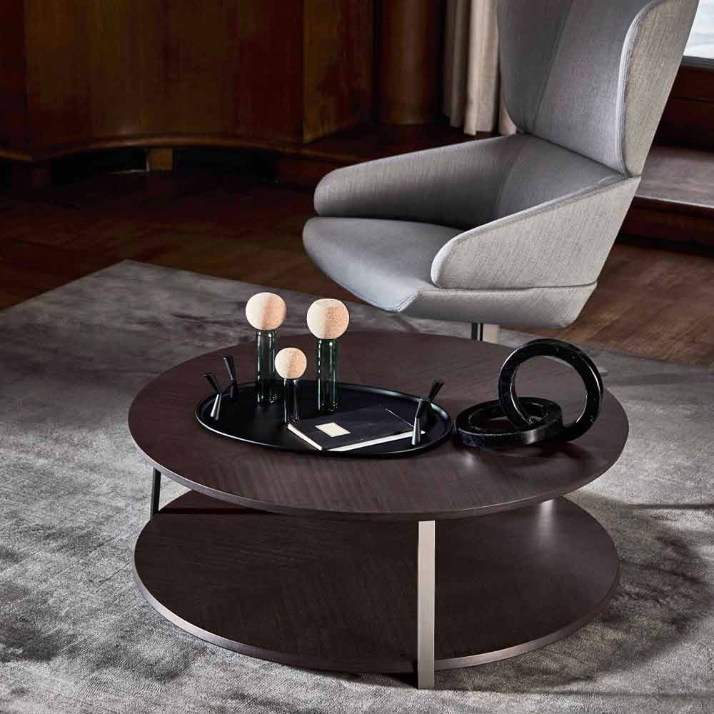 Table basse ronde en mdf avec structure en métal Made in Italy, luxe.