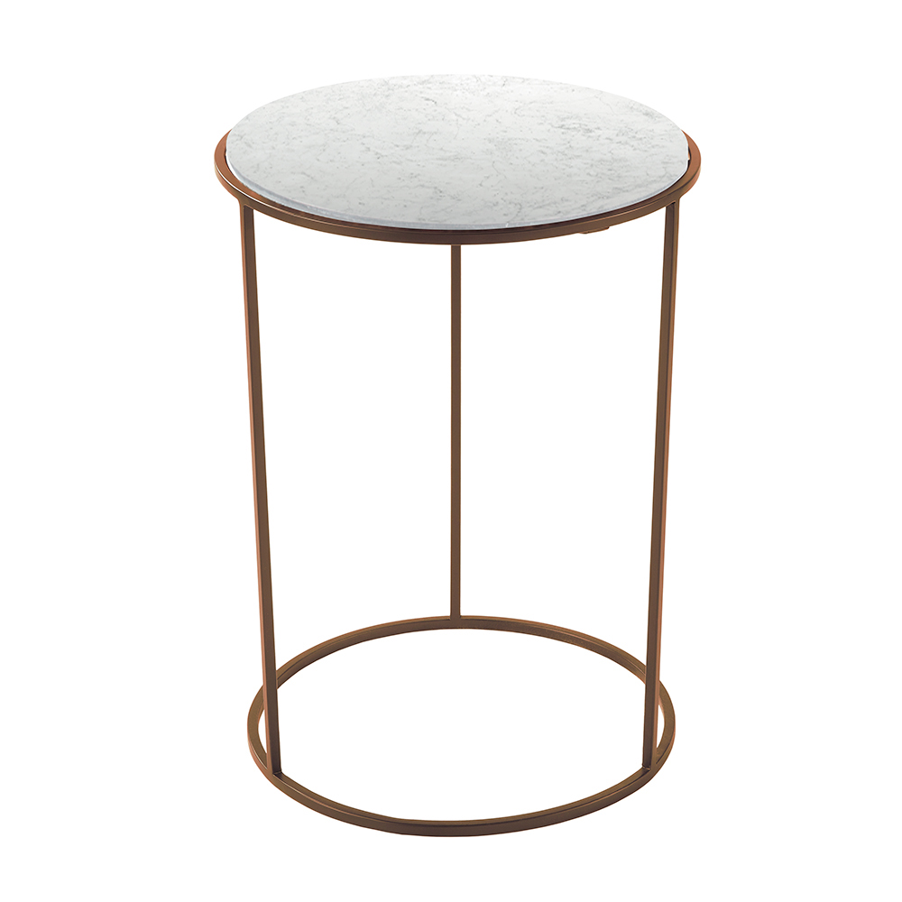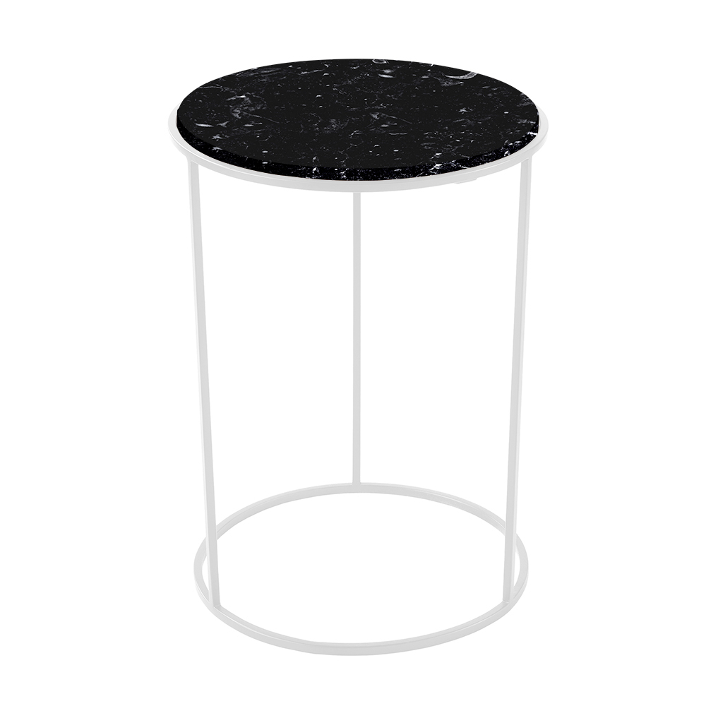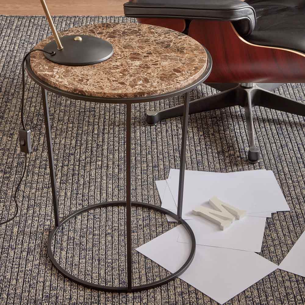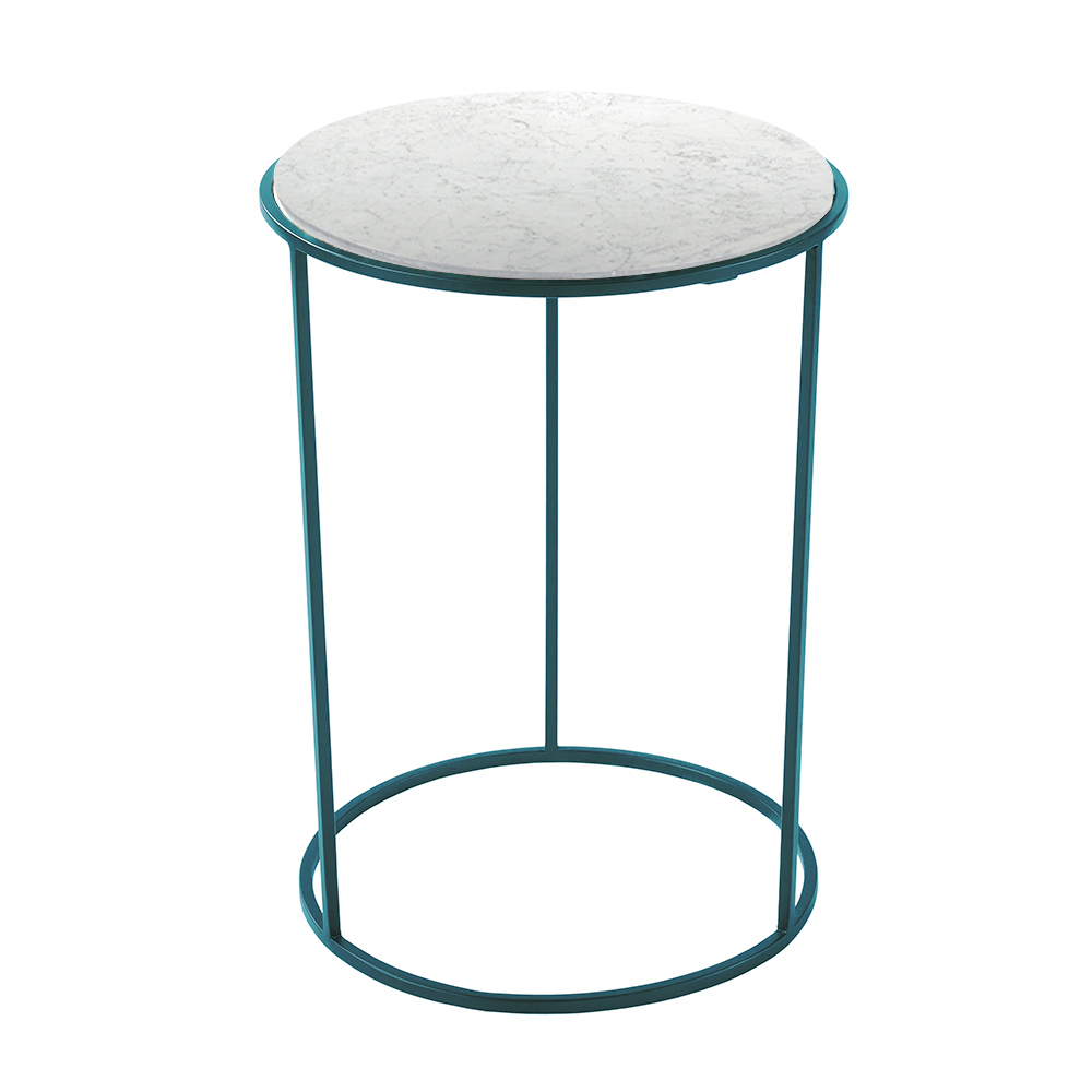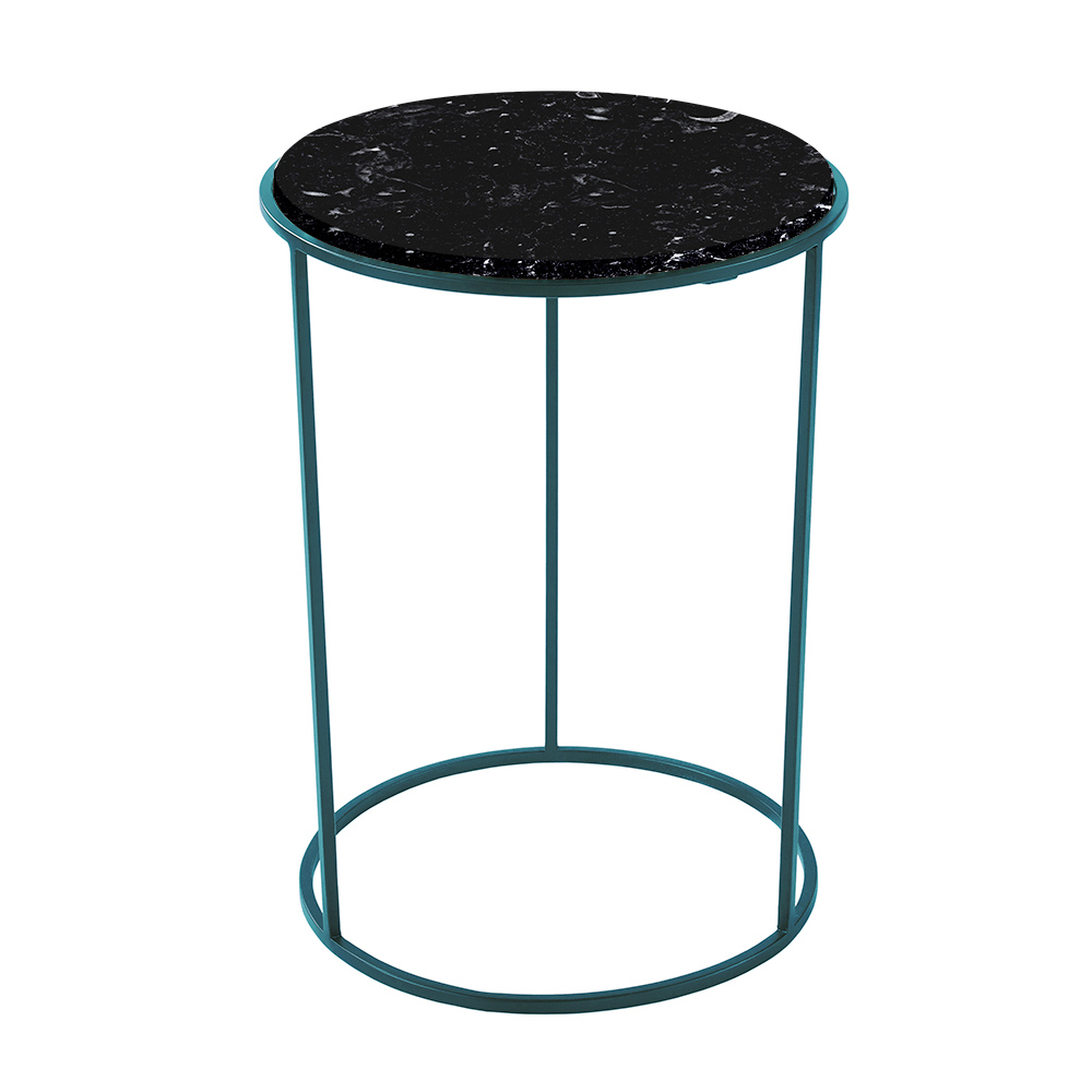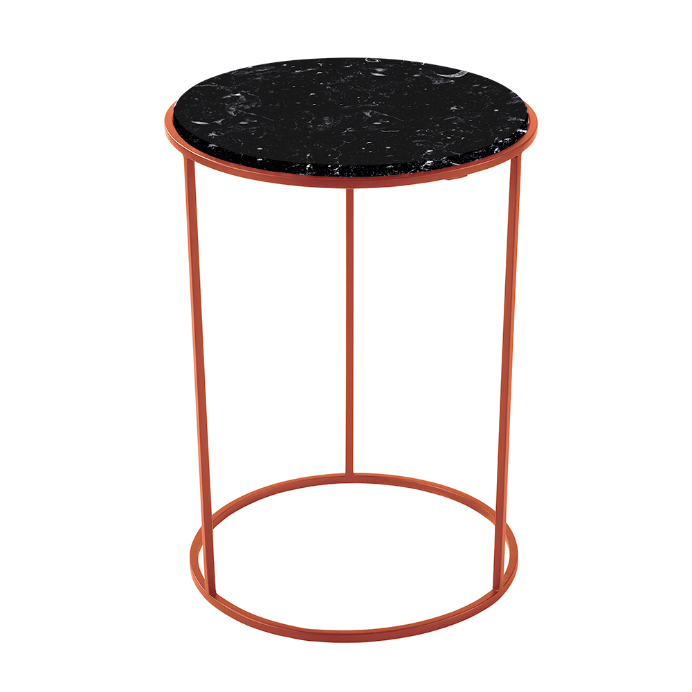 table basse ronde avec plateau en marbre opaque, disponible en trois variantes différentes, présente des lignes minimales et essentielles. Le
